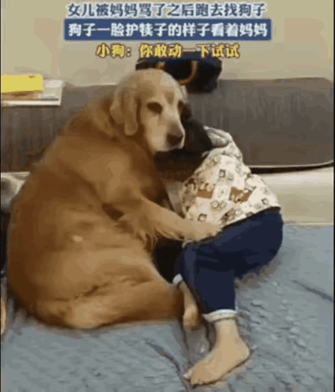 这狗是真的护主。 小女孩被妈妈说哭了,跑到狗身边。狗立刻挡在她前面,盯着妈妈看