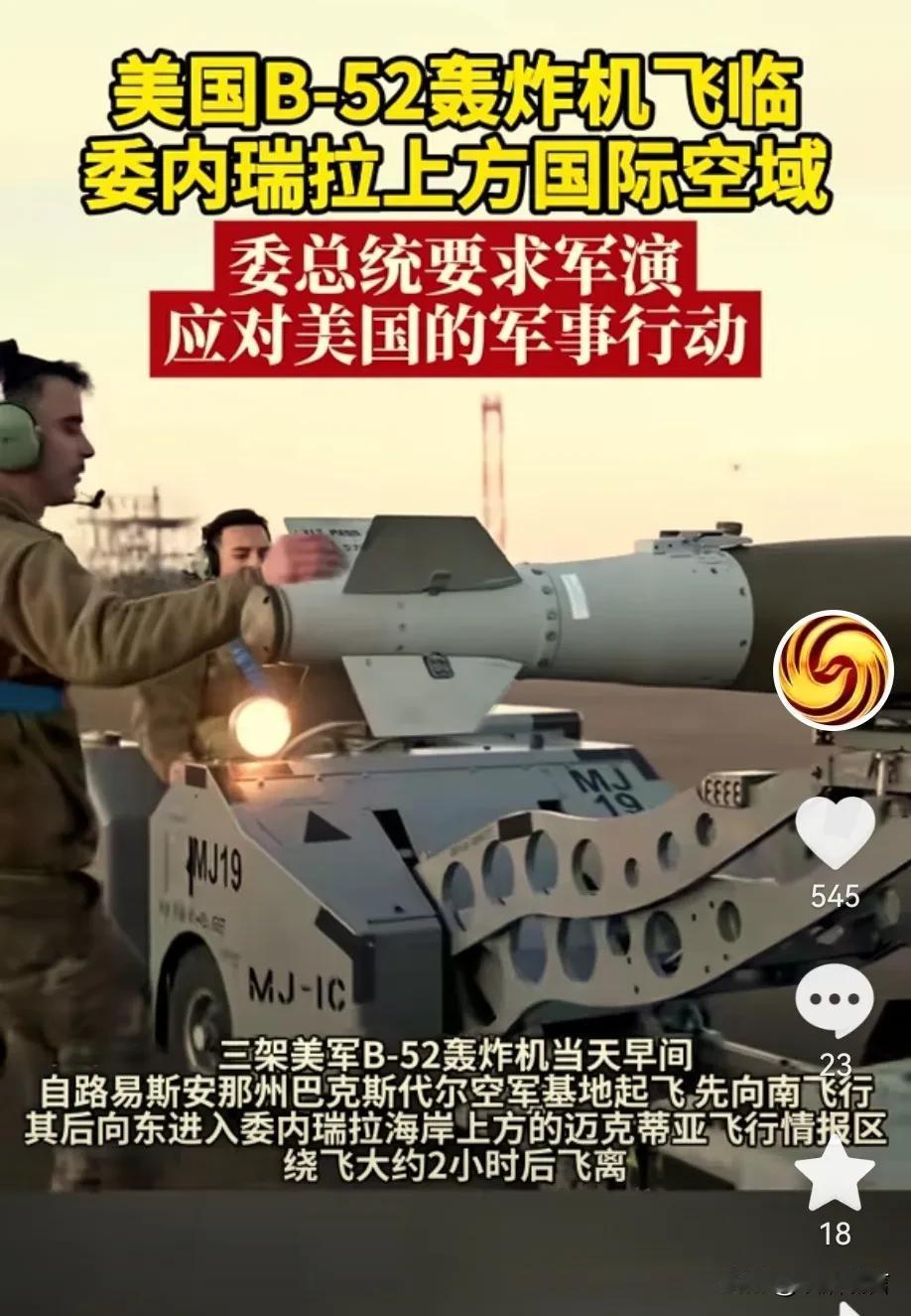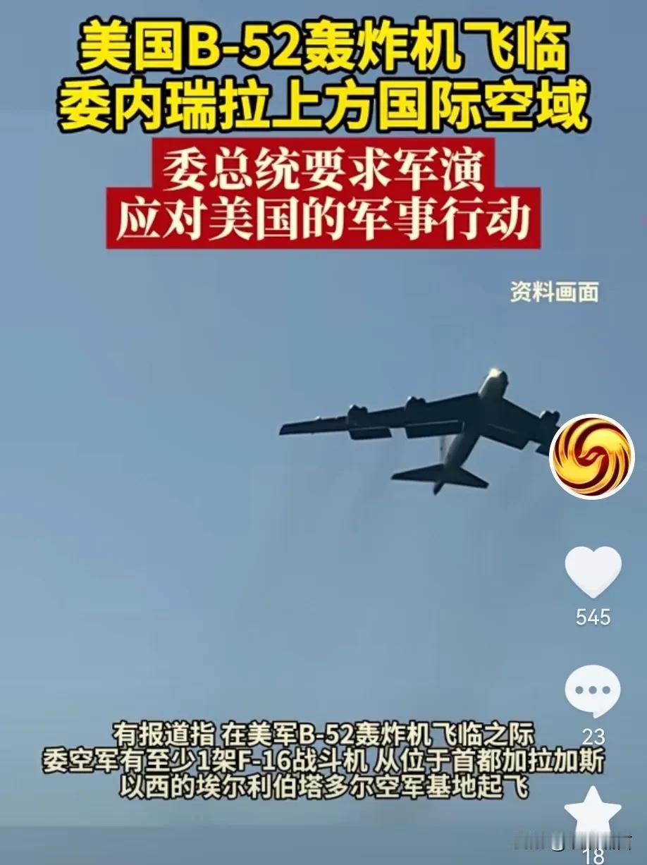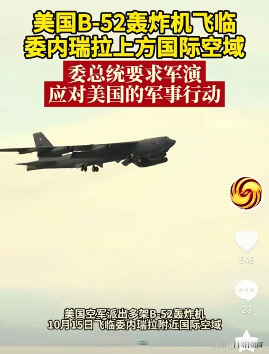 突发消息! 美军两架B-52出现在委内瑞拉上空 这可是一款轰炸机, 不是普通战机, 难道美军提前对委内瑞拉进行试探 还是说美军是真的要对委内瑞拉下手进行打击, 美军围着委内瑞拉不打原因是什么? 难道是在看他背后力量的反应吗? 还是说美军想委内瑞拉自己给美国利益? 而且美国已经给中情局下了命令, 要求中情局直接介入, 美委局势越来越紧张, 难道就没有愿意进行调和的国家吗? 美委擦枪走火会引发大得战争吗? 委内瑞拉战局 南美委内瑞拉