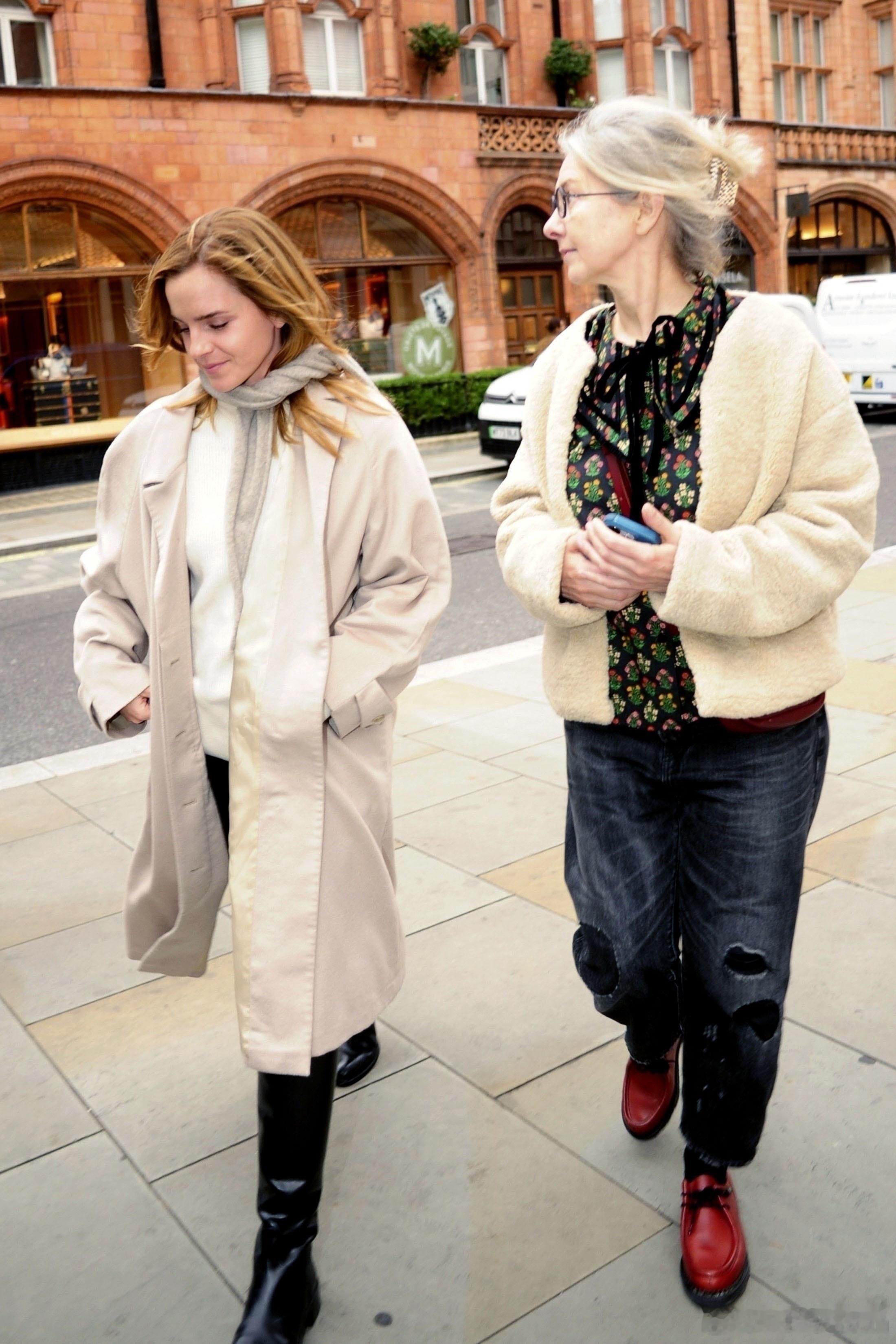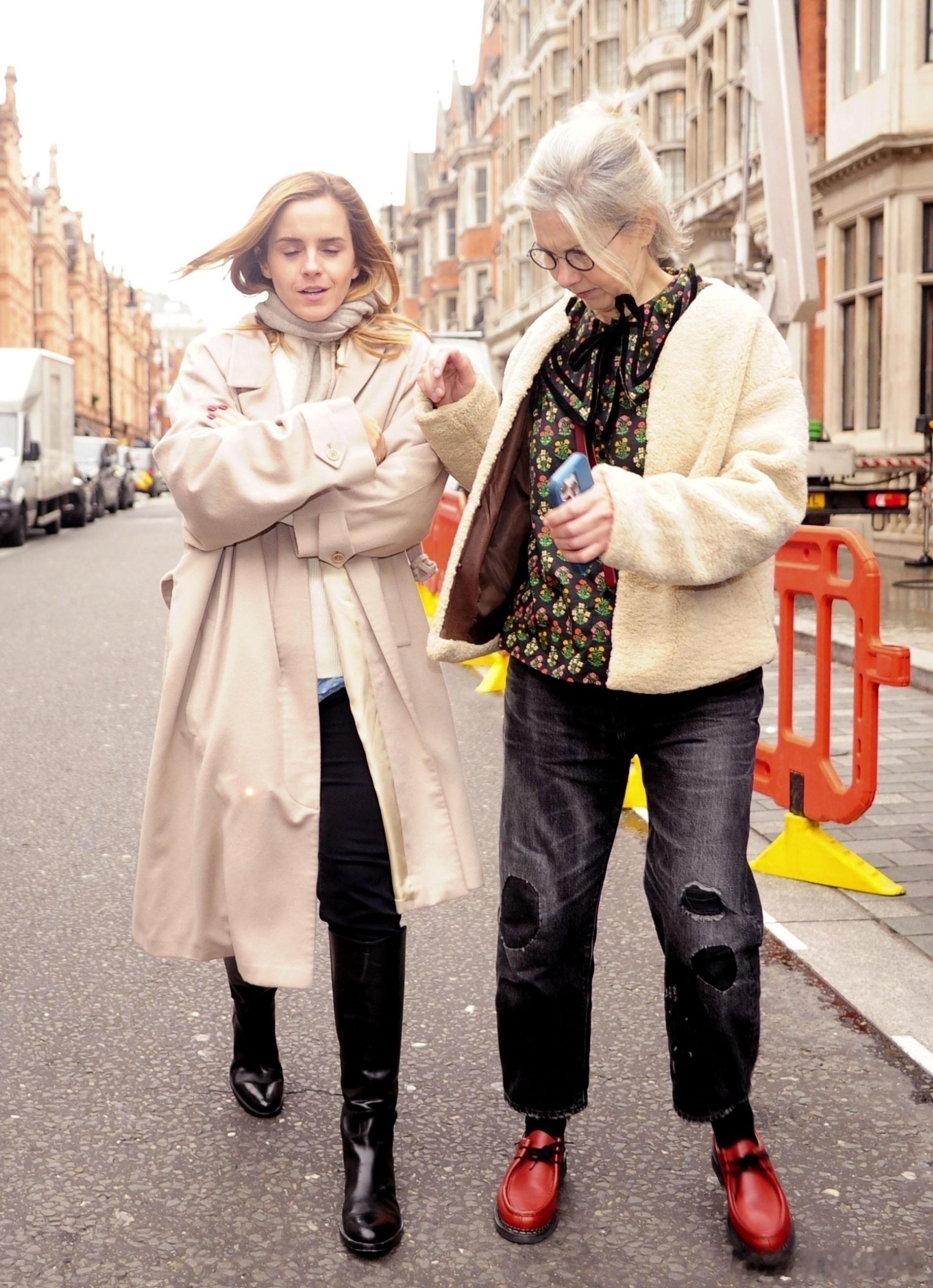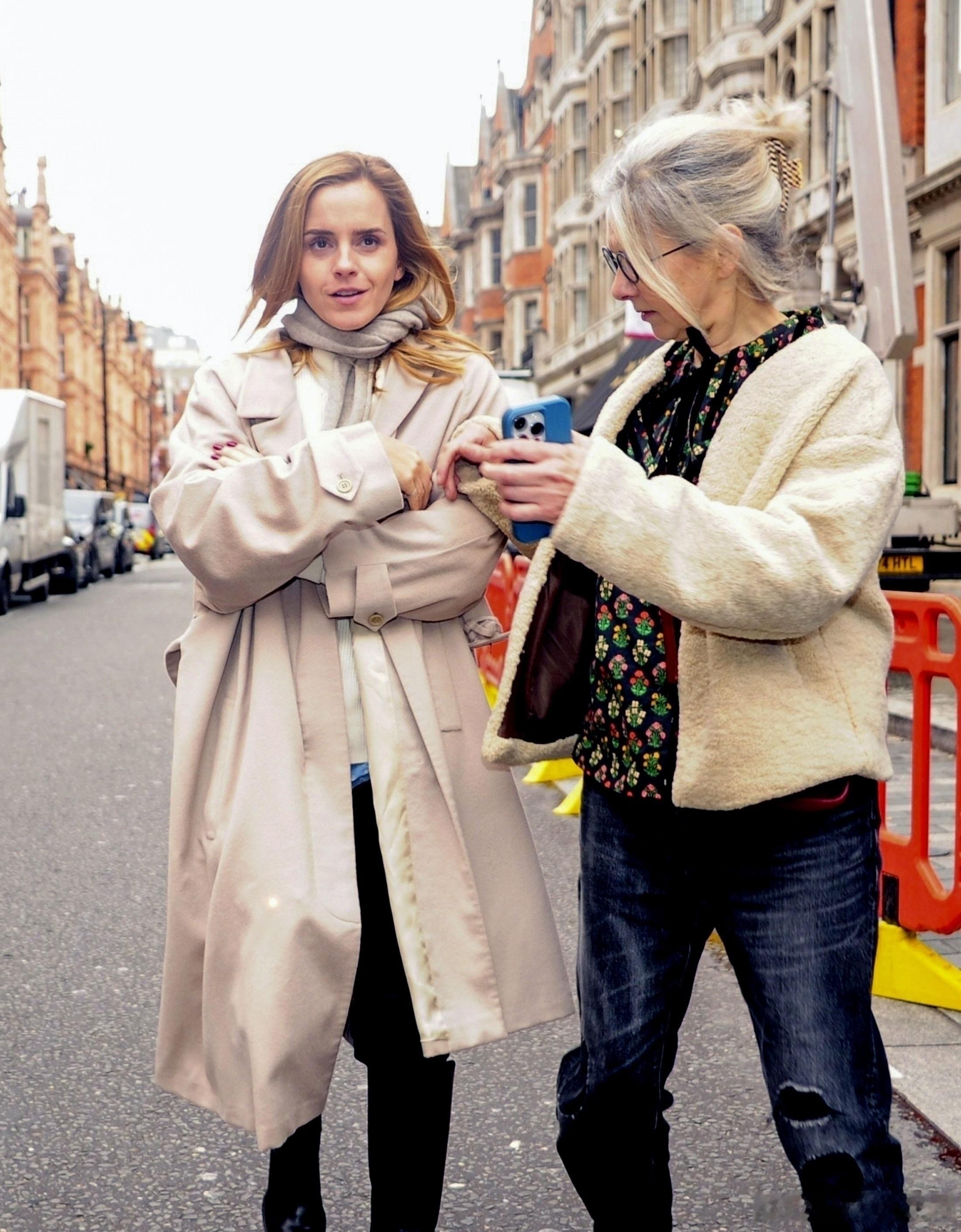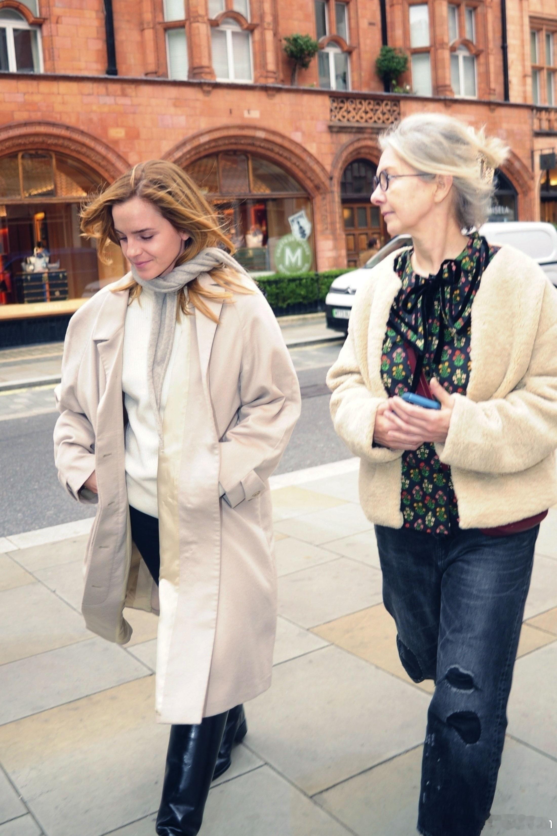 Emma Watson艾玛沃特森和朋友在伦敦外出并一起搭车计程车离开,伦敦那边已经上冬装了