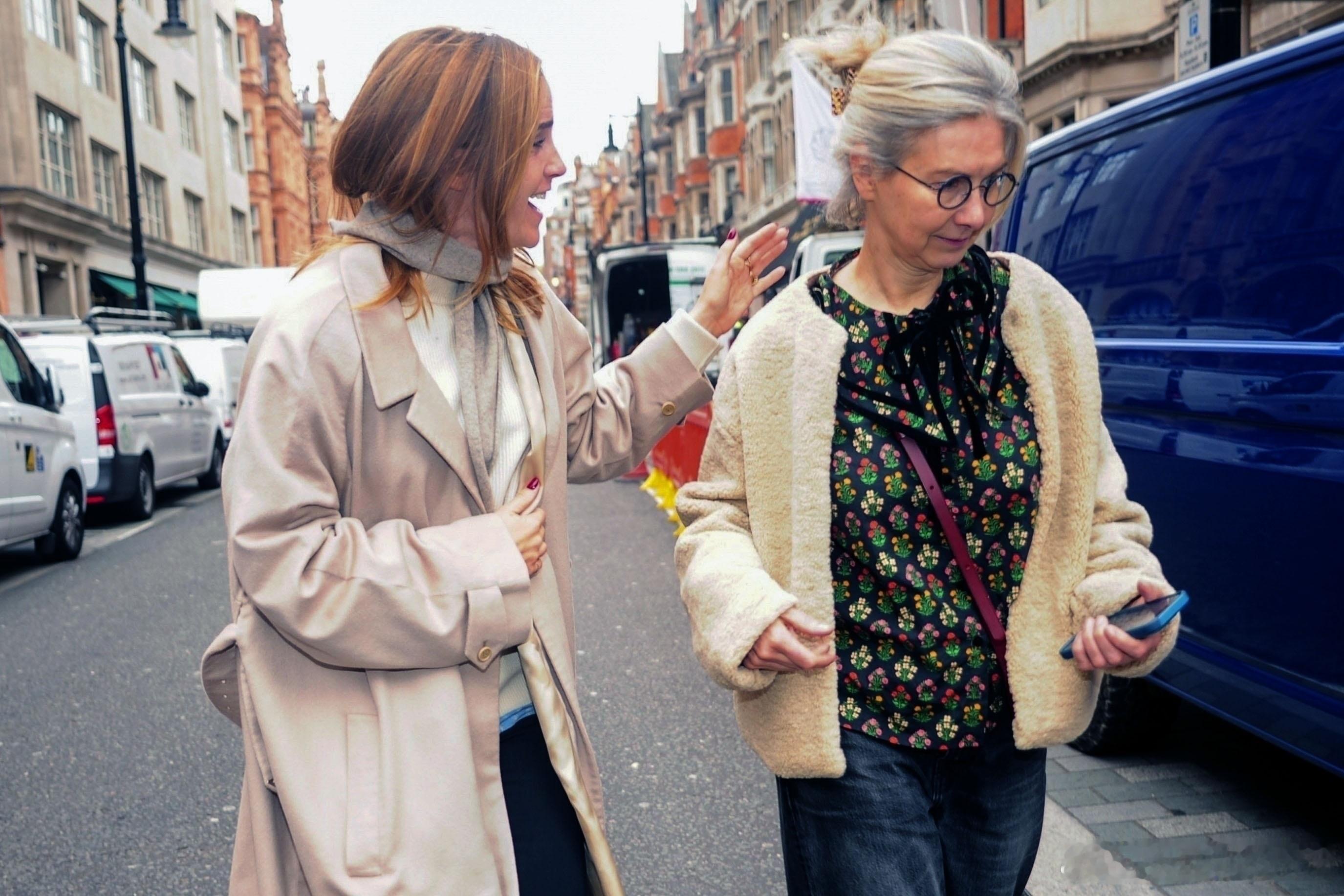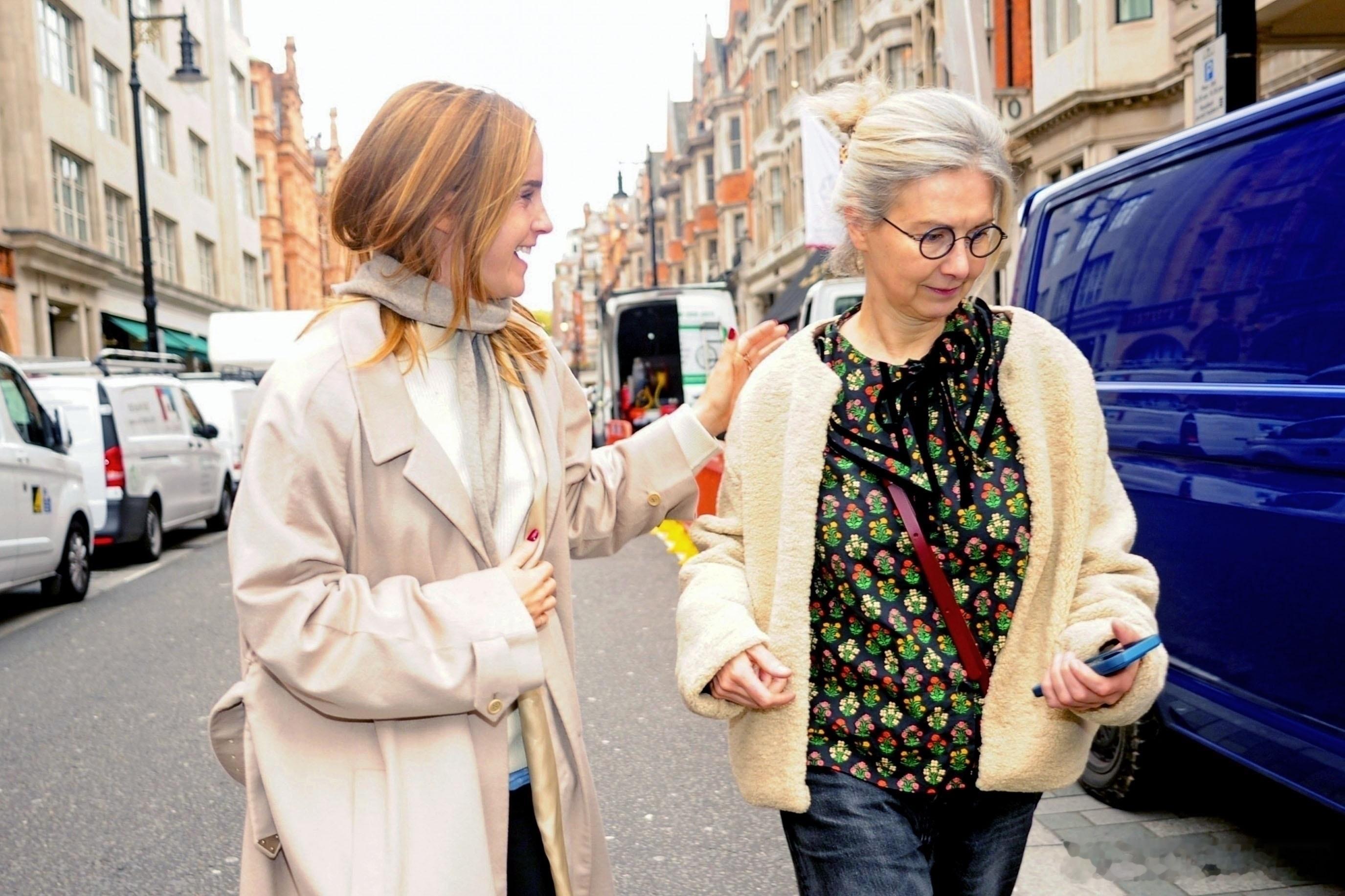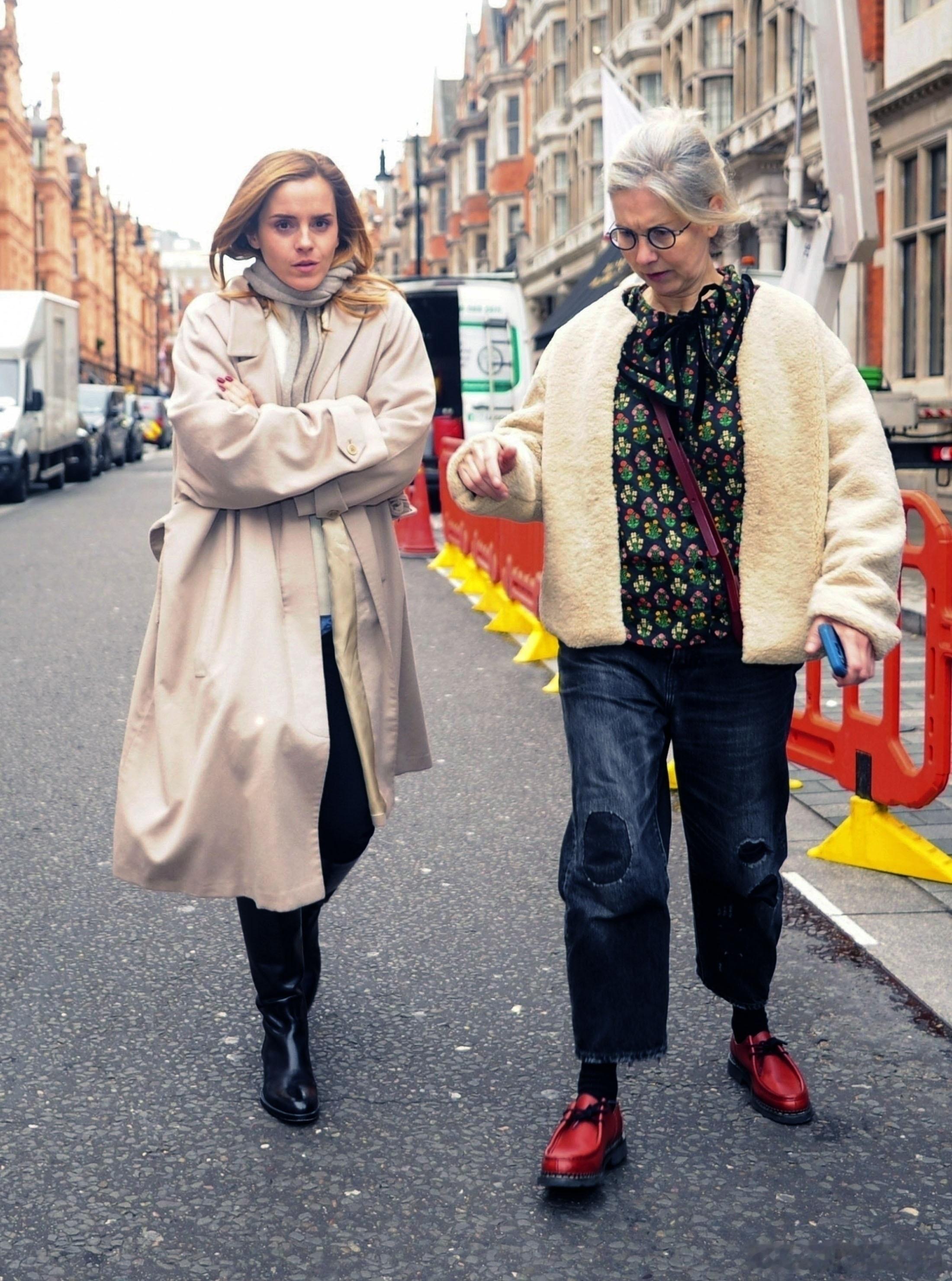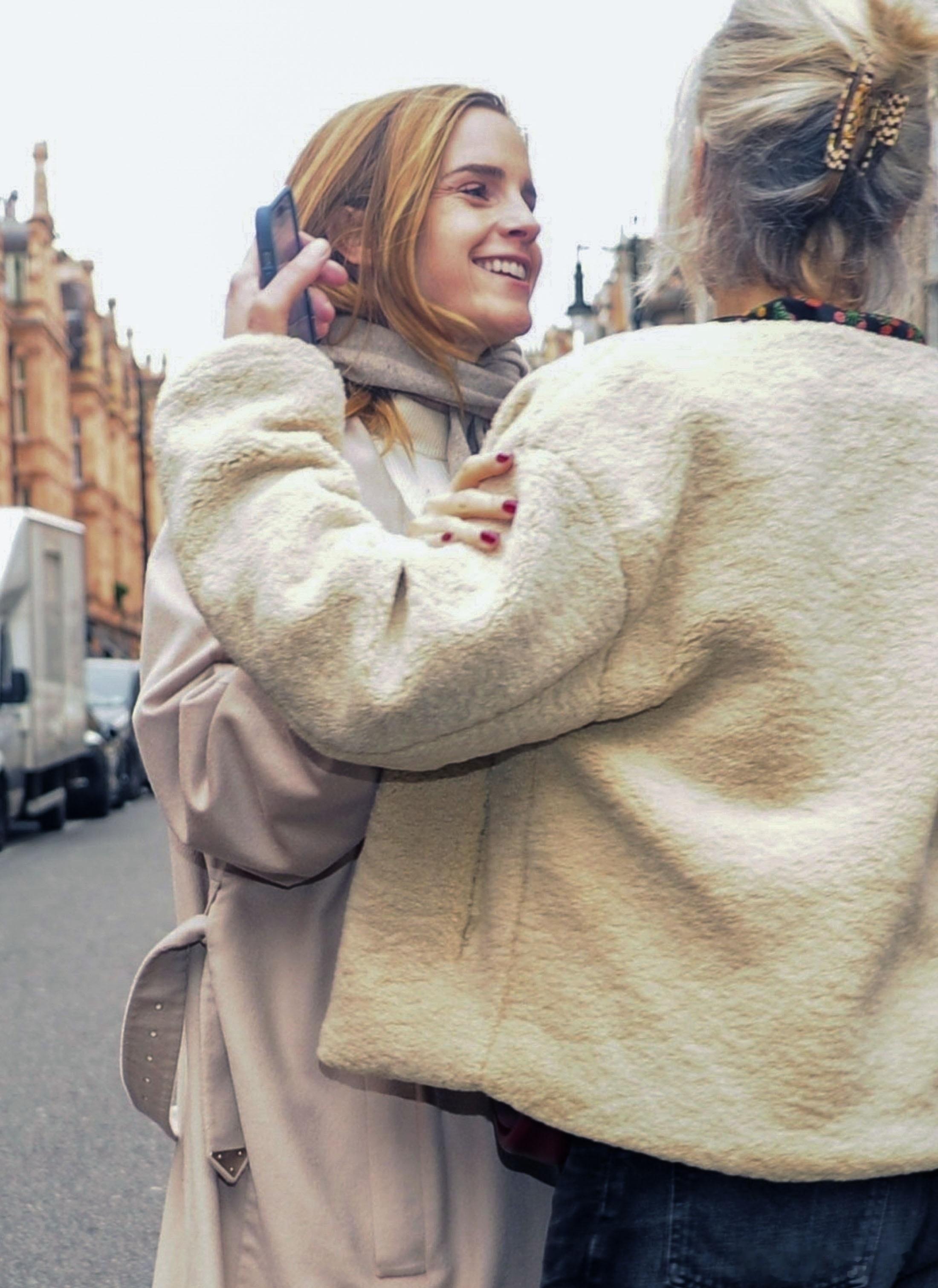 Emma Watson艾玛沃特森和朋友在伦敦外出并一起搭车计程车离开,伦敦那边已经上冬装了