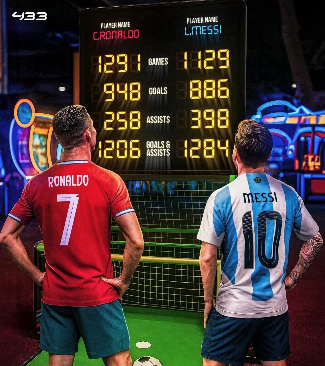 宝刀不老!40岁左右的绝代双骄梅西和C罗的较量还在继续,来看看他们的数据: 梅西:出场1129场,打进866球,贡献398次助攻,一共制造1284球,场均超过1球。 C罗:出场1291场,打进948球,贡献258次助攻,一共制造1206球。 值得一提的是,C罗打进点球178个,梅西打进点球111个;梅西打进任意球69个,C罗打进任意球64个;C罗上演过66次帽子戏法,梅西帽子戏法58次。 数据不骗人,助攻数梅西大幅领先,C罗之所以进球数比梅西多,就因为多进了60多个点球和多踢了100多场比赛。当然最大的差距是梅西拿了一届世界杯,而C罗没有。不知道2026年C罗最后一届世界杯能不能圆梦。 那么问题来了,您认为梅西和C罗谁是真正的王者?#梅西# #C罗#