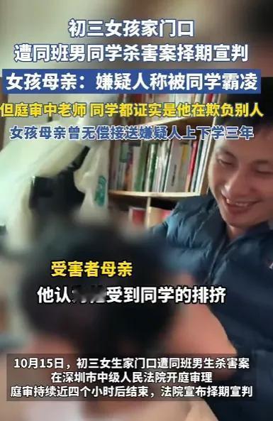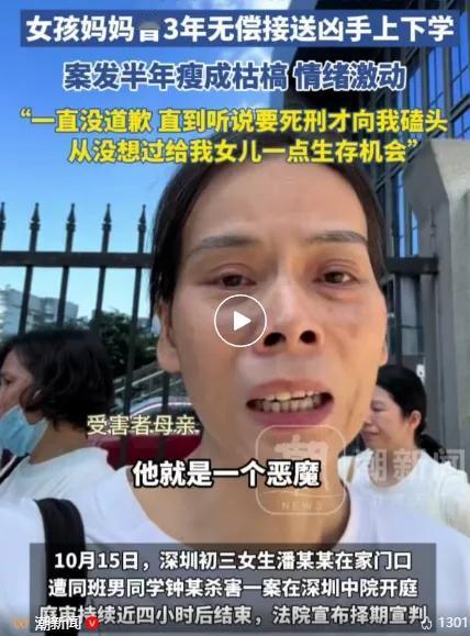 深圳初三女孩优优被害,曾仕强的话含金量还在上升,曾仕强说“宁可救虫,不要救人”,优优妈妈三年接送钟建川,得到确实自己闺女被害的噩耗,就算在路边投喂一只流浪狗它还知道摇摇尾巴。 我们有太多的苦难,都是从救了一个人开始,最后被他害惨了。 曾仕强教授临终前留下的这句话,曾一度引发争议。 直到深圳龙华这场悲剧发生,人们才猛然读懂其中的沉重。 48岁的曾女士三年如一日免费接送同小区男孩钟建川上下学,换来的却是14岁独女优优倒在血泊中的噩耗。 在深圳这样通勤紧张的一线城市,接送孩子是每个家庭的重担。 三年前,钟建川的母亲找到曾女士,说自己丈夫常年在外,上班实在顾不上孩子,恳请顺带接送儿子和姐姐。 曾女士心软了,她33岁才生下优优,深知养娃不易,更想着自家姑娘是女孩,有同校男生作伴或许能多份保护。 而这一接,就是整整三年,然而没人想到,这份日复一日的善意,竟在钟建川心里滋长出嫉妒的毒芽。 优优成绩稳居班级前列,正常发挥能考上深圳前20名的公立高中,而深圳足足有90多所公立高中。 不仅如此,优优的性格也十分的开朗,和同学相处融洽,但这些却都成了钟建川眼中的“刺”。 2025年4月8日下午,悲剧在小区楼栋门口上演。 陈同学的父亲像往常一样把三个孩子送回小区,钟建川走到自家楼栋后又突然折返,掏出提前网购的折叠刀拦住独自上楼的优优。 楼上邻居亲眼看见钟建川正对着优优施暴,厉声喝问“你在干嘛”,他才慌忙逃窜。 可听到优优微弱的呼救声,他竟又跑回去,对着女孩的脖子、胸口等要害部位补刀,前后一共26刀。 法医鉴定显示,优优心脏和双肺都被捅破,最终因失血休克死亡。 更让人齿冷的是凶手一家的伪装,钟建川跑回家,骗父母说自己“见义勇为被人砍伤”,他的母亲立刻在小区群里帮儿子圆谎。 而曾女士那时刚从厨房出来,听到楼下有人喊“孩子晕倒”,想起女儿有低血糖,疯了似的冲下去,看到的却是女儿浸在血泊里的模样。 曾女士被别人拉着,让她别碰,影响抢救,可她一看就知道,孩子已经没气了。 然而警方的调查却揭开了更残酷的真相:这根本不是冲动作案。 钟建川早就上网查过“15岁杀人应负什么样的刑事责任”,还曾想过买无色无味的毒药,只因管制严格才换成了刀。 小区后特意折返、听到呼救又补刀,每一步都透着精心策划的残忍。 10月15日的庭审现场,矛盾彻底爆发。 钟建川一开始还抱怨看守所“又苦又累”,盼着早点回学校。 直到听见曾女士哭着要求判处死刑,才突然崩溃跪地磕头,反复喊着“放过我,我不想死”。 可从头到尾,他没对优优说过一句真心的道歉。 他的律师试图用“被校园霸凌”“爷爷去世受刺激”辩解,却被当庭的老师同学戳穿。 大家都证实,是钟建川平时总欺负别人,根本不存在被霸凌的情况。 曾女士拒绝了所有赔偿,她带着优优的照片站在法庭上,头发已经全白。 这场悲剧里,最让人无奈的是善意的错位。 曾女士的善意本应得到回应,可钟建川一家不仅毫无感恩之心,反而用谎言和残忍回报善意。 就像网友说的,哪怕是路边投喂的流浪狗,还会摇尾巴示好,这份持续三年的恩惠,竟连一点人性的温度都没换来。 如今案件还在等待宣判,可两个家庭的破碎已经无法逆转。 曾女士至今不敢搬家,怕女儿“回来找不到家”,想女儿的时候就点开对话框发消息,说说家里的琐事。 钟建川则亲手毁掉了自己的人生,也让父母陷入万劫不复的境地。 曾仕强的话之所以让人共鸣,从不是要否定善意,而是提醒人们善意该有边界。 信息来源:潇湘晨报2025-10-15发布:深圳14岁女孩家门口被男同学杀害案择日宣判,被告在法庭下跪请求原谅