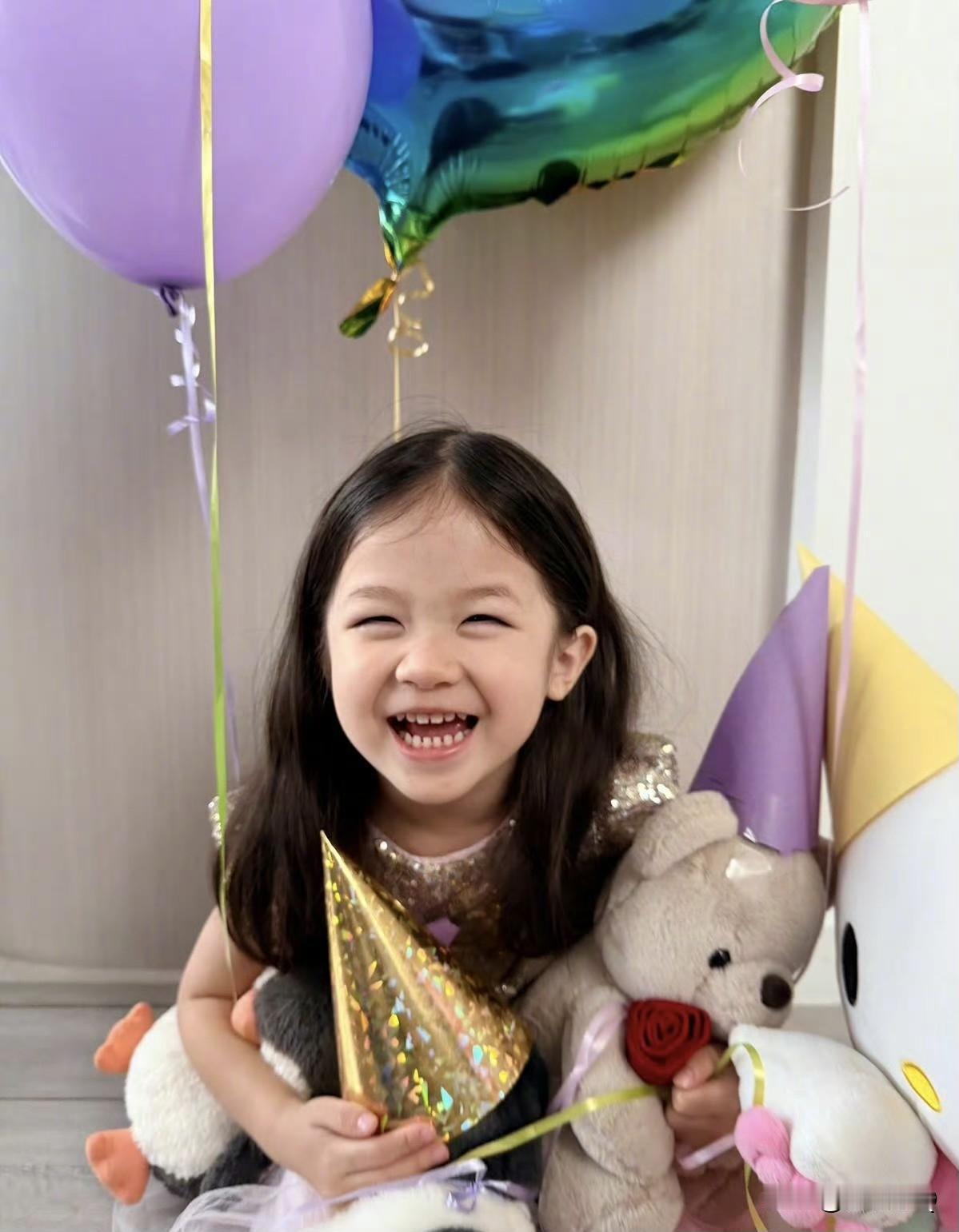 钟嘉欣为小女儿Anika庆祝三周岁生日,Anika笑起来可真像爸爸。说来钟嘉欣老公的颜值不高,但幸好有钟嘉欣的基因参与,成功挽救了三个孩子的颜值,长得都很可爱。