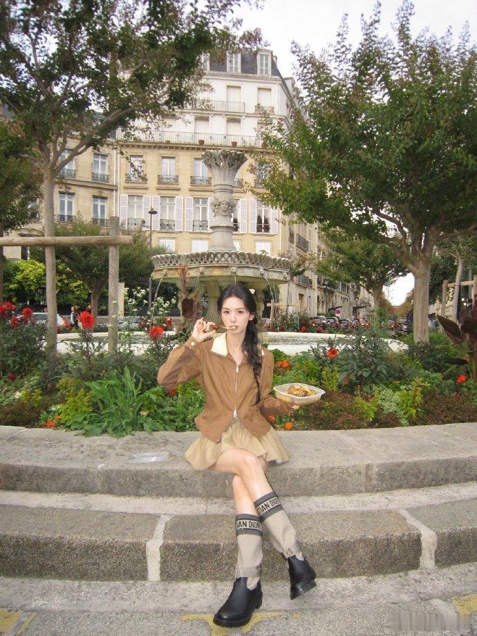 周也吃鸡腿优雅范周也路边优雅吃鸡腿