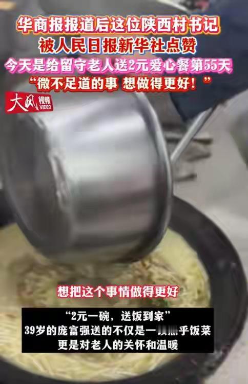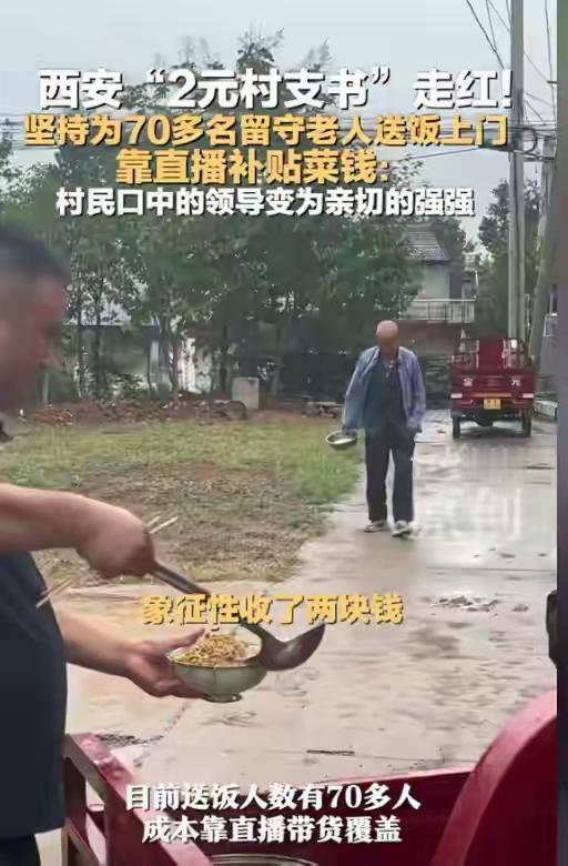 陕西蓝田icon,“二元村支书”庞富强火了!新华社点赞,直播赚菜钱给老人做饭,一碗饭只卖两元,村民见了都喊“强强” 庞富强是蓝田县三官庙镇里峪湾村的村支书,村里多是行动不便的留守老人,去县城要20多公里,做饭成了大难题。他曾是厨师,8月起便想着给老人做饭,本想靠直播赚钱免费送,可考虑到老人爱面子,琢磨两三天后,决定象征性收两元。 每天饭点一到,他就骑着三轮车穿梭在分散的村落,不管是凉皮还是清淡营养的热饭,统统两元一碗。遇到行动不便的老人,他会送到床边;碰到家庭困难的,就找理由不收钱。有次送饭时,还及时发现摔倒的老人,让其得到救治。 以前村民都喊他“村支书”“领导”,如今见面全是亲切的“强强”“强强娃”。中秋时,他还为回不来子女的老人办露天聚会,冷清的村子瞬间热闹起来。网友纷纷称赞,91岁老支书也写表扬信夸他“为官一任,造福一方”。他却说只是尽了晚辈的义务,还盼着更多人关注留守老人。