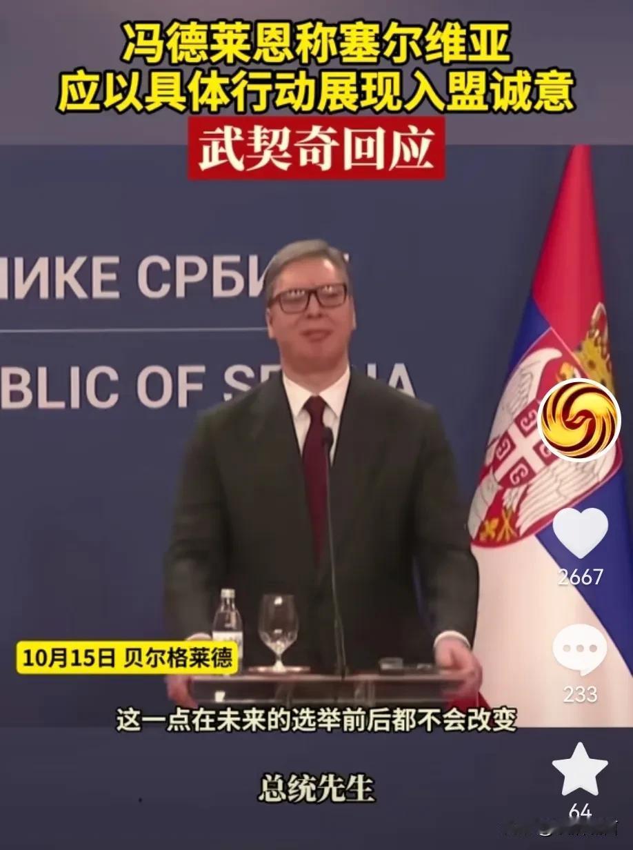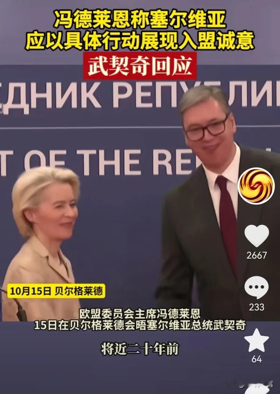 塞尔维亚的武契奇现在也卑微了! 为了想加入欧盟国家体系, 自己受了不少委屈和屈辱, 包括上次在欧盟峰会上, 自己没有位置和凳子, 这可是当着几十个国家元首, 武契奇被羞辱一番, 而他仍然想加入欧盟, 这就是一个小国需要保护国民, 自己需要面对太多的外交政策, 自己不得不卑微, 欧盟主席冯德莱恩要求他拿出诚意 其实也就是投名状, 他一个人卑微换来了国民发展, 不得不说武契奇心胸宽阔, 是一位好总统!