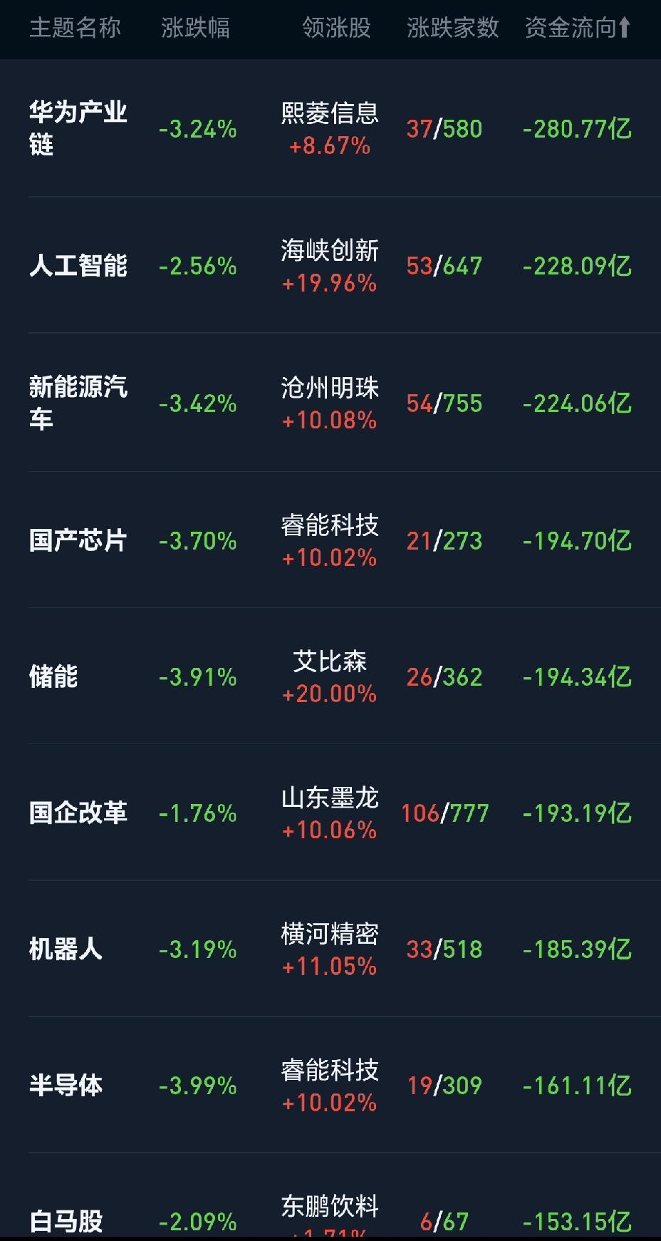 今天大盘毫无征兆的迎来大跌,散户是一片哀嚎。 大家都在猜测,今天的大盘为何跌的那么狠,几乎没有一点反弹。 从资金流向来看,科技股、半导体,人工智能等成了重灾区。 很多个股只在短短一周时间,回调幅度达到30%以上,说明了啥,前期涨幅太大了,主力都是获利出盘,估计一大批散户扛下了所有。 下周将正式开启三季度报表披露序幕,谁强谁弱将一目了然。 很多人一直在问,证券啥时开始启动,说句不好听的,很难。 理由也简单,证券里的散户太多了,主力不会轻易拉。