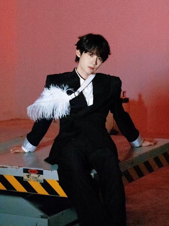 周翊然黑衣白羽 周翊然黑衣白羽,周翊然见面会花絮照,黑色西装胸前一支白色羽毛点缀,简约又独特的帅气啊~
