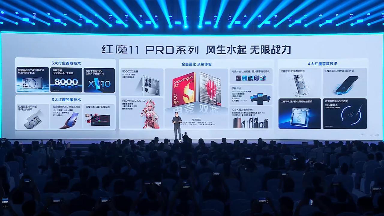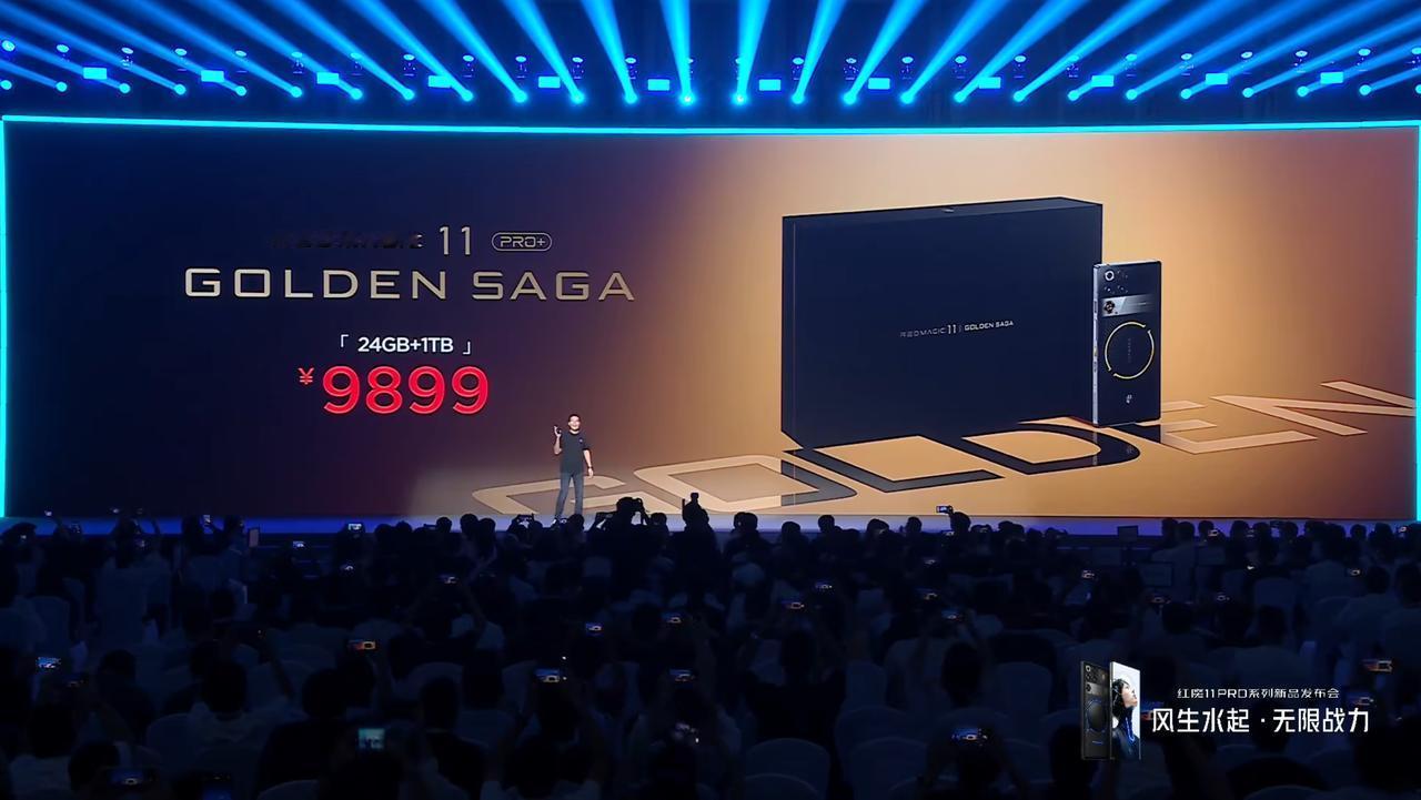 红魔 11 Pro+ 发布,12+256GB 暗夜骑士售价 5699 元、16+512GB 氘锋透明售价 6499 元、16+512GB 氘锋透明银翼售价 6999 元、24GB+1TB 氘锋透明银翼售价 7699 元 红魔 11 Pro+ GOLDEN SAGA 24GB +1TB 售价 9899 元 - 芯片:骁龙 8 Elite Gen5 处理器,LPDDR5T 内存(10667Mbps),UFS 4.1 Pro 闪存,红芯 R4 自研游戏芯片(支持 2K 144Hz 超分超帧并发),ICE 11 魔冷散热系统(脉动水冷引擎 + 24000 转/分钟风火轮主动散热风扇 + 13000mm² 4D 冰阶 VC + 复合液态金属 3.0); - 屏幕:6.85 英寸 2688×1216 京东方 X10 OLED 真全面屏,支持 144Hz 刷新率、多指 360Hz 触控采样率、3000Hz 瞬时采样率(新思触控芯片),全局激发亮度 1600nit,局部激发亮度 2000nit,10bit 色深,支持低亮度 2592Hz PWM 高频调光 + 高亮度类 DC 调光,超声波指纹识别,1.25mm 屏幕黑边; - 相机:前置屏下 16MP(豪威 OV16A1Q),后置 50MP 主摄(豪威 OV50E40,1/1.5",OIS)+ 50MP 超广角(豪威 OV50D)+ 2MP 微距(豪威 OV02F10)三摄; - 续航:7500mAh 牛魔王电池,支持 120W 快充,80W 无线充电,支持充电分离; - 其他:厚 8.9mm,重 229g,有暗夜骑士、氘锋透明暗夜、氘锋透明银翼 3 款配色,配备 520Hz 独立 IC 触控灯效双肩键,1015 + 1115E 超线性扬声器、三麦克风,东磁 0815 X 轴线性马达,USB 3.2 Gen 2、3.5mm 耳机接口,蓝牙 5.3,Wi-Fi 7、NFC、红外遥控、IPX8 防水,运行 REDMAGIC OS 111 系统。