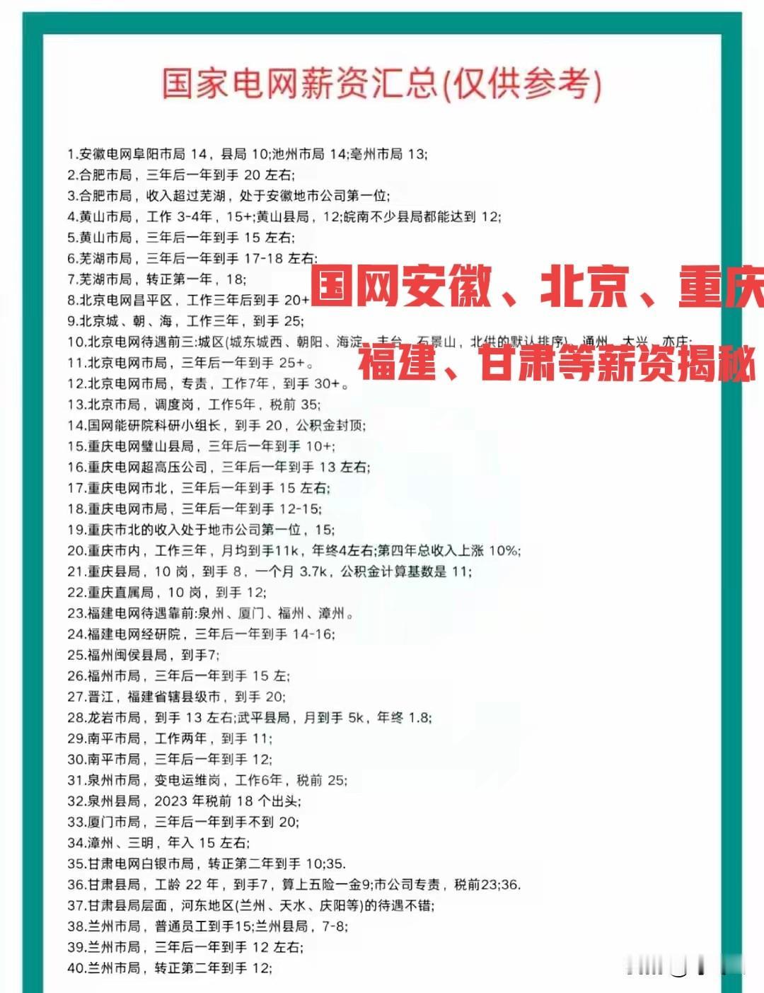 国家电网校招岗位薪资待遇怎么样?是不是铁饭碗,到底有多铁?国网河北省、河南省、黑龙江省薪资待遇大揭秘一!国网安徽省、北京市、重庆市、福建省、甘肃省等薪资待遇揭秘二。快来围观揭秘详细内容![招财进宝][招财进宝][来看我][来看我][点亮平安灯][点亮平安灯] 陕西电网招聘 安徽国网招聘 南方电网招聘 河北电网待遇 辽宁电网待遇 江苏电网待遇 国家电力招聘