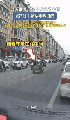 老人在车流中间推着自制三轮车,司机按喇叭提示他危险,老人居然恼羞成怒,拿起三轮车上的铁锹对着过路车辆就拍。他完全把马路视为他的地盘了,看他的身手孔武有力,决非老弱病残之辈,如果单干,下车的司机恐怕不是他的对手,一旦拍坏了车子也只能自认倒霉。 你说,对这种暴脾气的坏老头该怎样惩治呢?