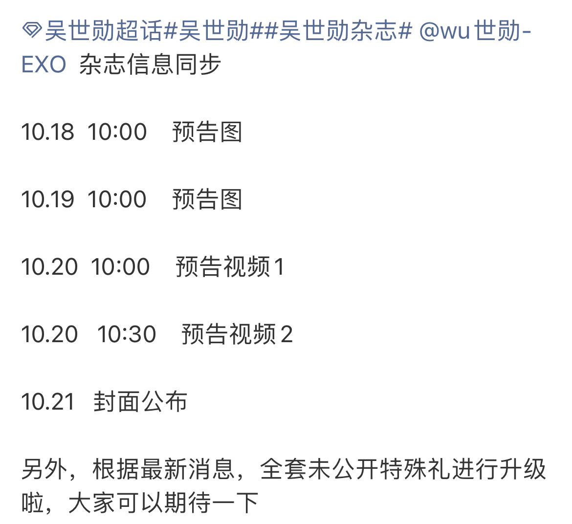 吴世勋杂志封面预告明天吴世勋杂志封面时装L'Officiel即将发布预告,退伍