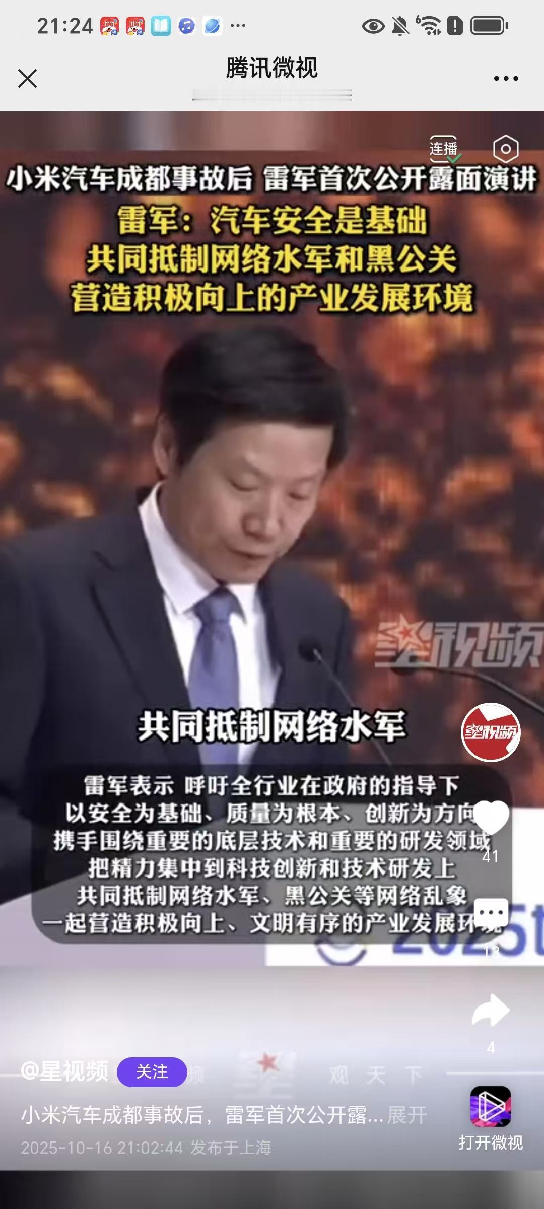 企业要发展没错 好的行业环境要营造也没错 消费者不管那么多大道理 他们希望他们买的产品 不管是什么米也好,苗也罢 除了一大堆花哨的功能外 自身最基本的安全能得到保障 而不是只把消费者当韭菜收割 这一系列的安全事件该让整个汽车行业都好好反思 我们是不是走得太快了 是不是忘了为什么出发? 小米汽车安全讨论 新能源汽车安全