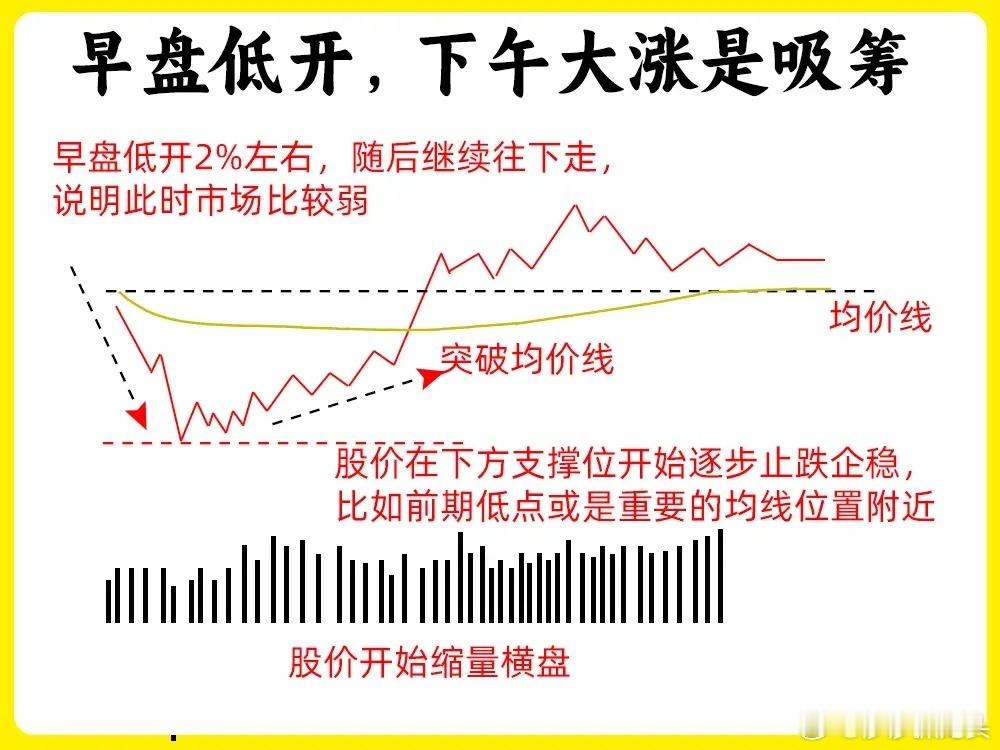 分时图里,股价低开后一直在均价线下方横盘,看似“弱势”,但突然放量突破均价线(突破时必须有成交量配合,不然可能是假突破)。突破后不急于大涨,反而缩量横盘,等到下午再次放量,突破横盘阶段的高点,甚至创当天新高。