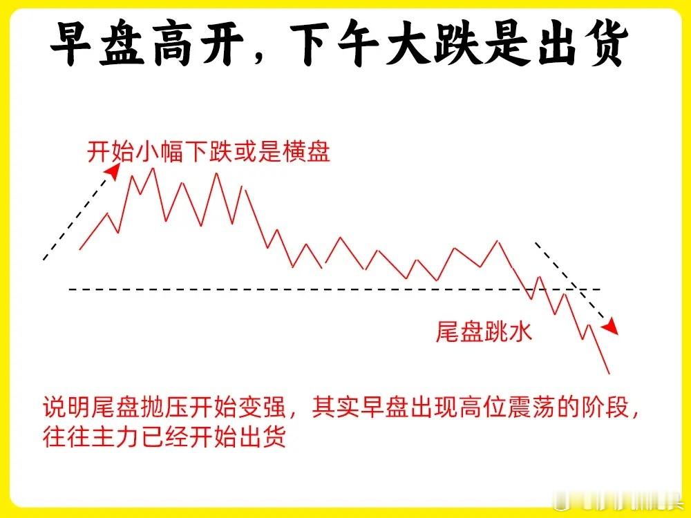 股价已经涨了一段时间,到了波段高位,早盘一开盘就高开,却不继续往上走,要么小幅下跌,要么横盘震荡,等到尾盘突然“跳水”大跌。