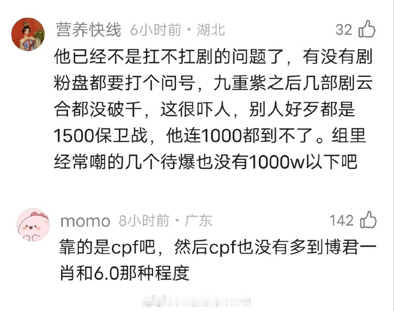 九重紫好像只爆了cp,在大众层面还是没爆,所以也没有剧粉盘[思考][思考][思考]