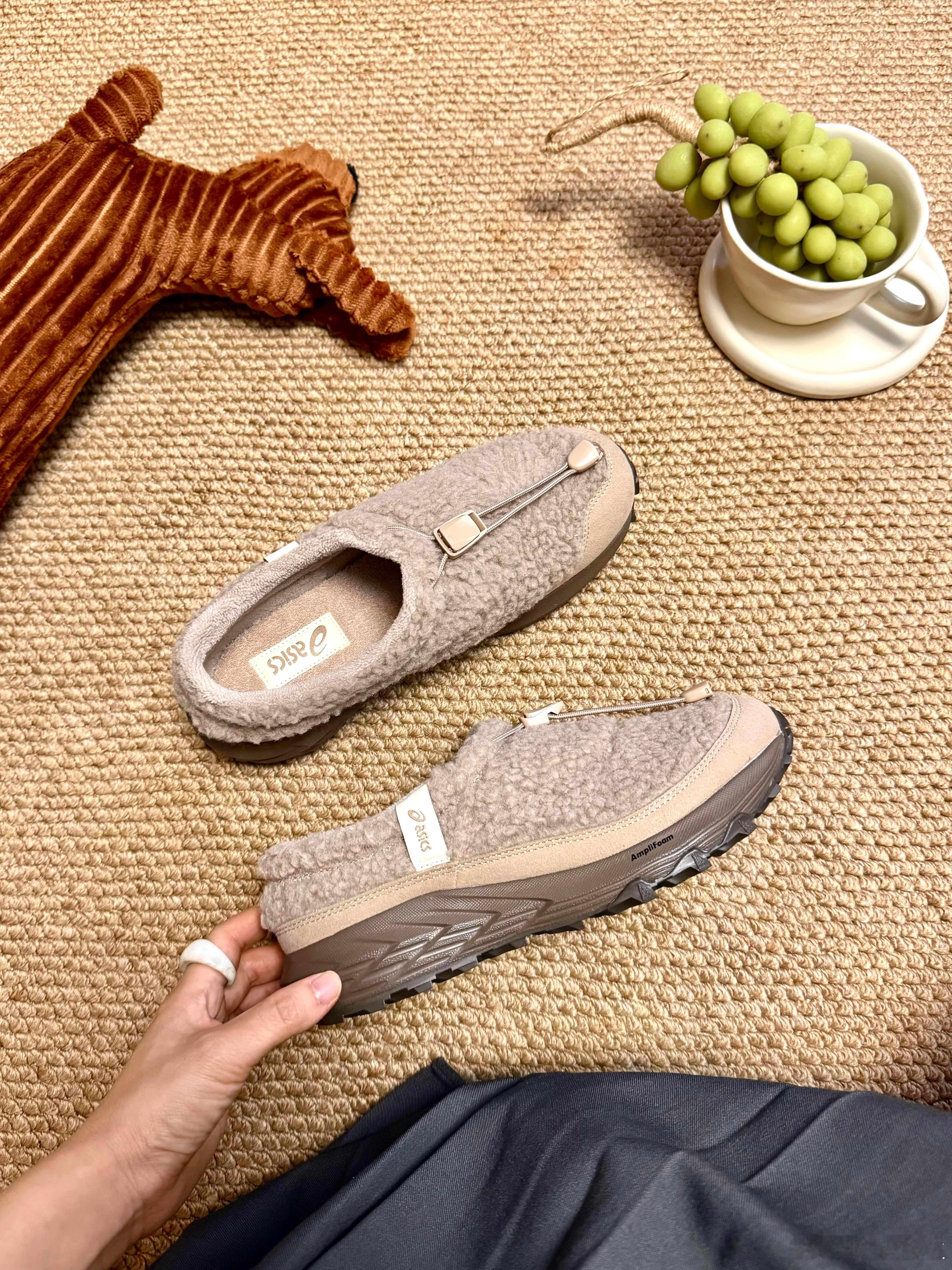 这双休闲鞋以简约温暖的设计诠释了日常舒适穿搭。浅棕色毛绒鞋面质感蓬松柔软,赋予双
