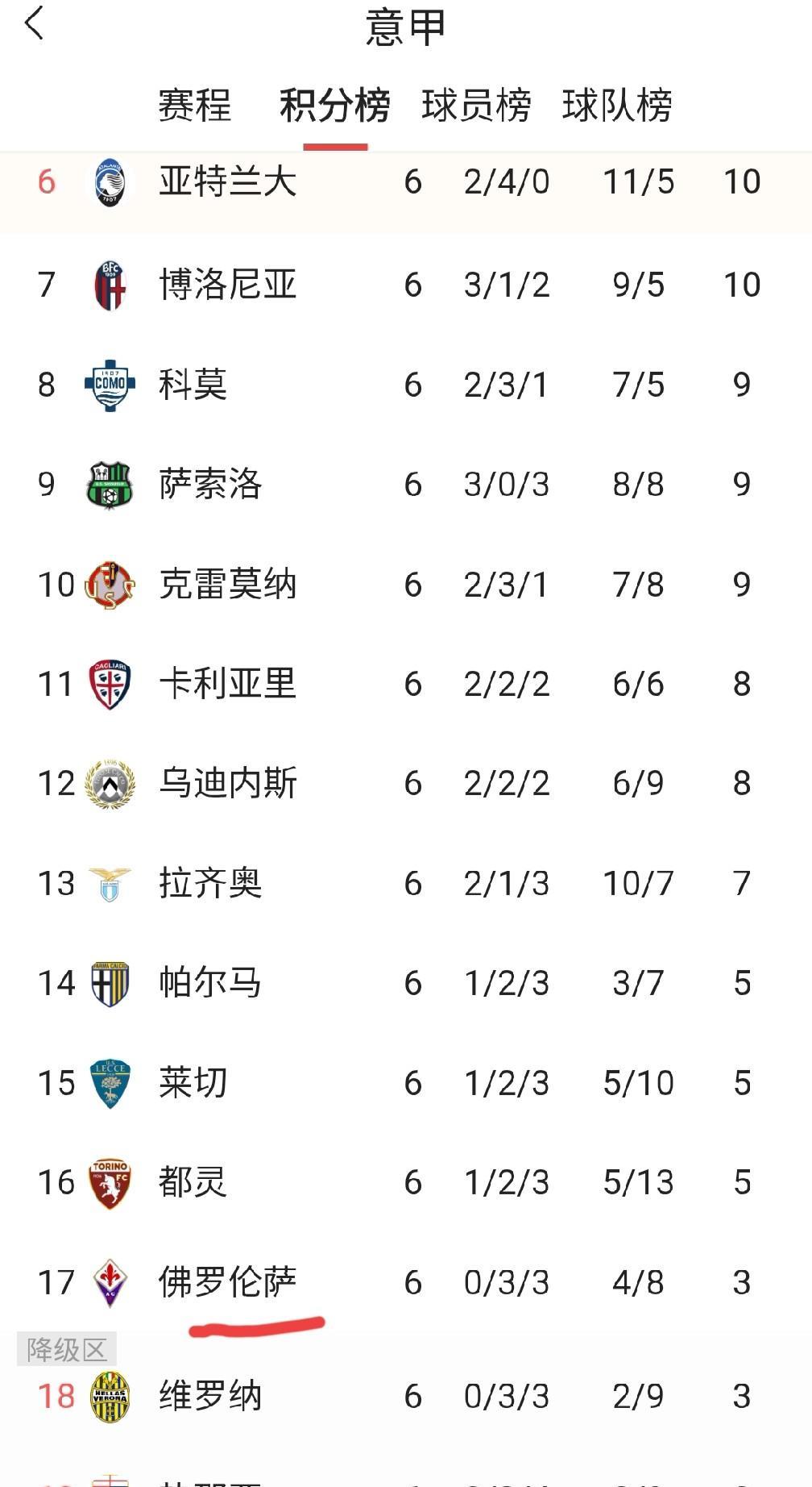 盘点本赛季光速掉队的5大联赛的几支强队。 意甲:佛罗伦萨,虽然紫百合没有意甲7姐