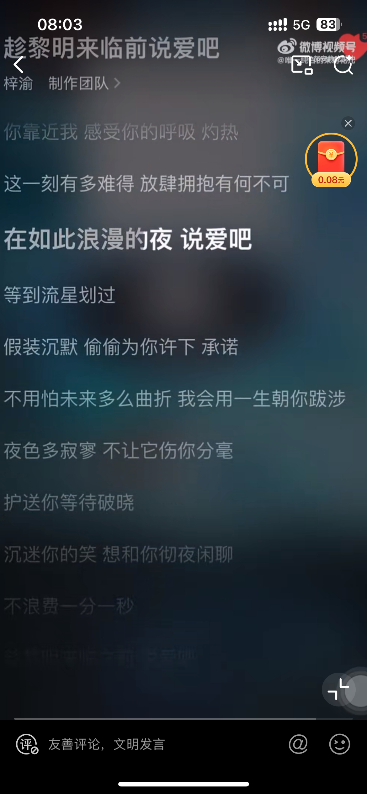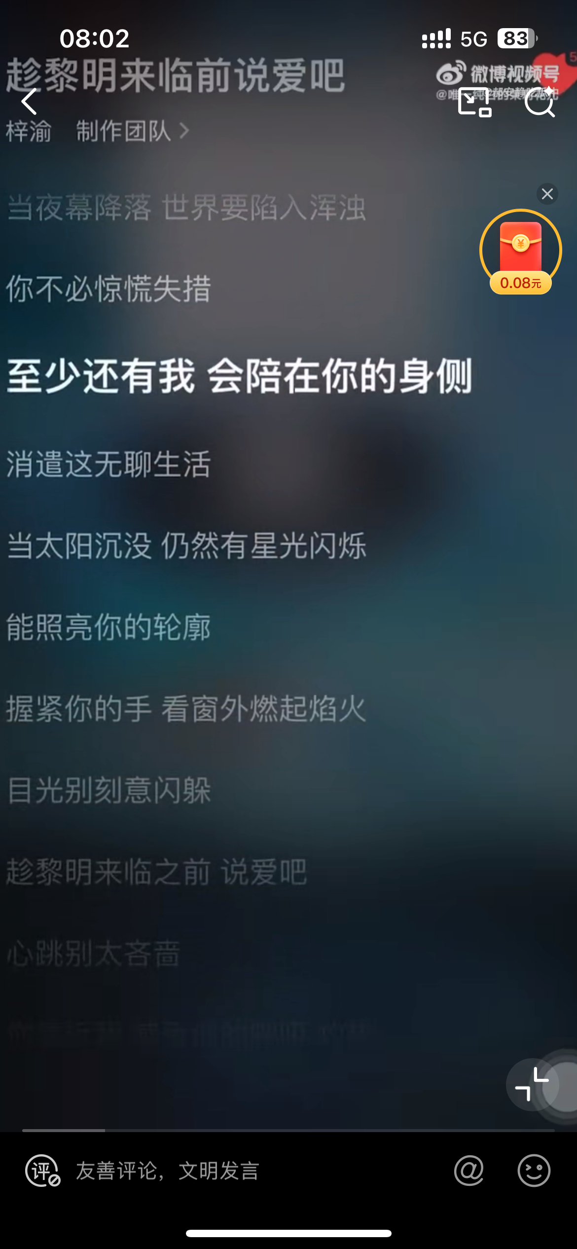 梓渝那首,趁黎明来临前说爱吧,我第一时间想到的是他半夜三更骑单车去给女友晒裤头,真的很爱了,就连歌词也很应景[允悲]