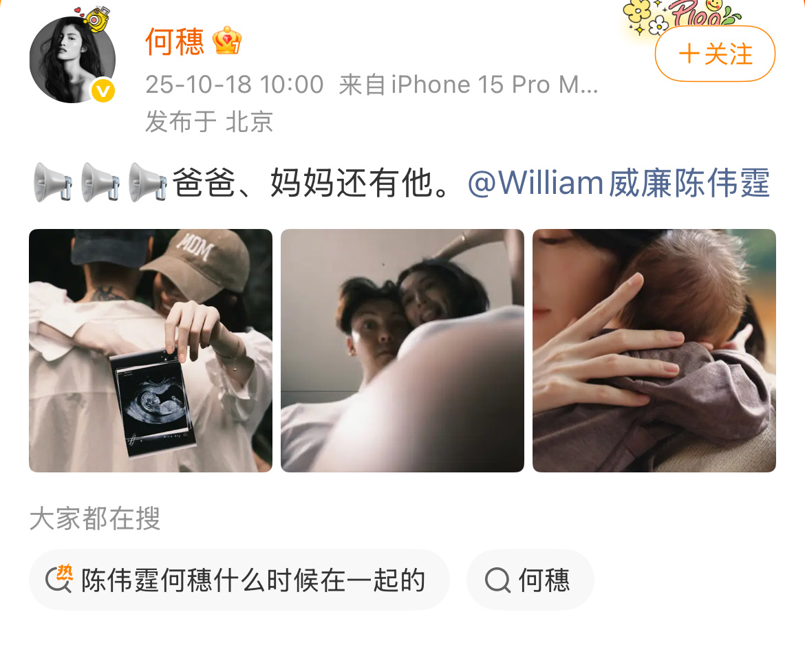 陈伟霆何穗官宣生子窝趣!!!陈伟霆官宣生子了!!!凭许我耀眼刚翻红的老叔就直接官宣了!!!