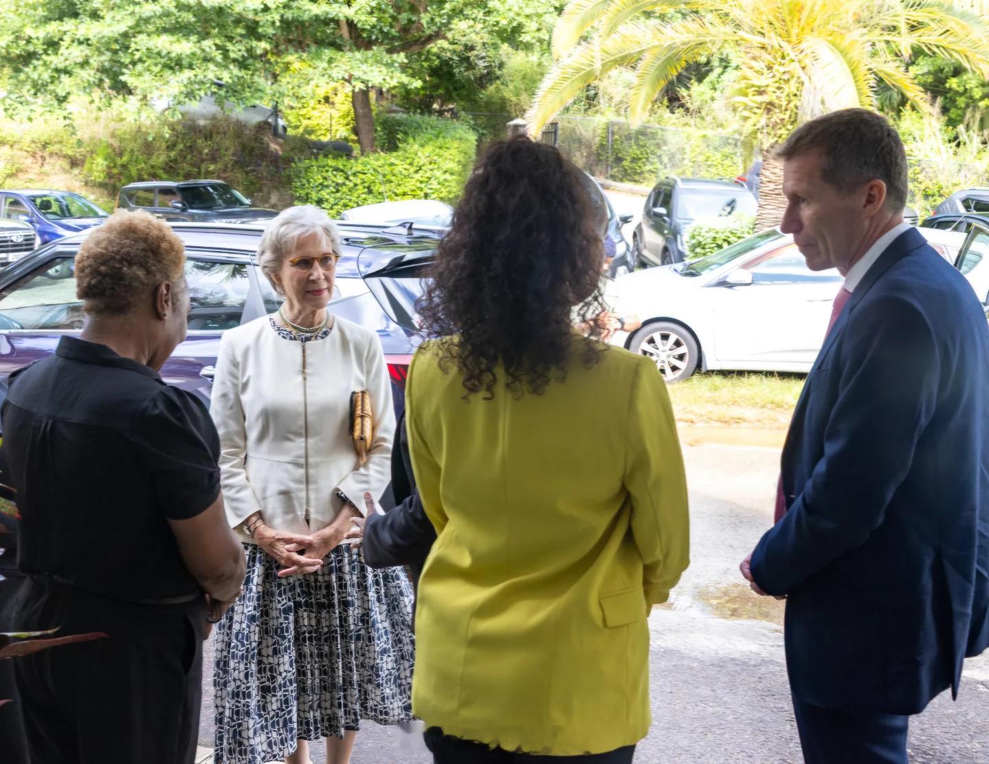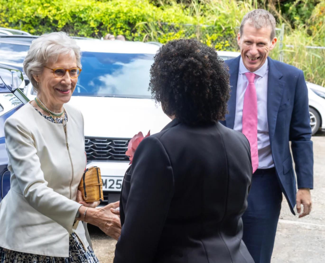 2025年10月17日,格洛斯特公爵夫人比尔吉特在百慕大访问Marjorie Bean女爵希望学校🇧🇲她穿的就是Eliot Zed家坡跟鞋。