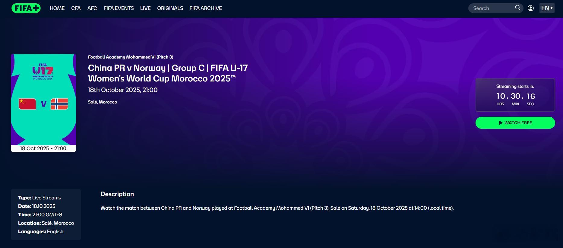 U17女足世界杯 今天中国女足小组赛首战挪威,很多朋友问在哪儿看,我统一回到一下。到国际足联官方网站,点击FIFA+,进入后注册,主要会用到邮箱。