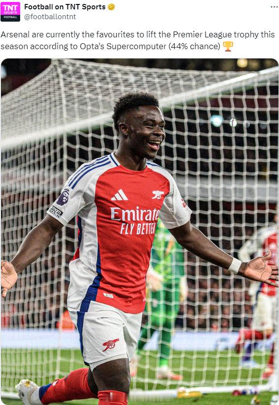 根据Opta超级计算机的预测,阿森纳目前是本赛季夺得英超联赛冠军的热门球队(夺冠