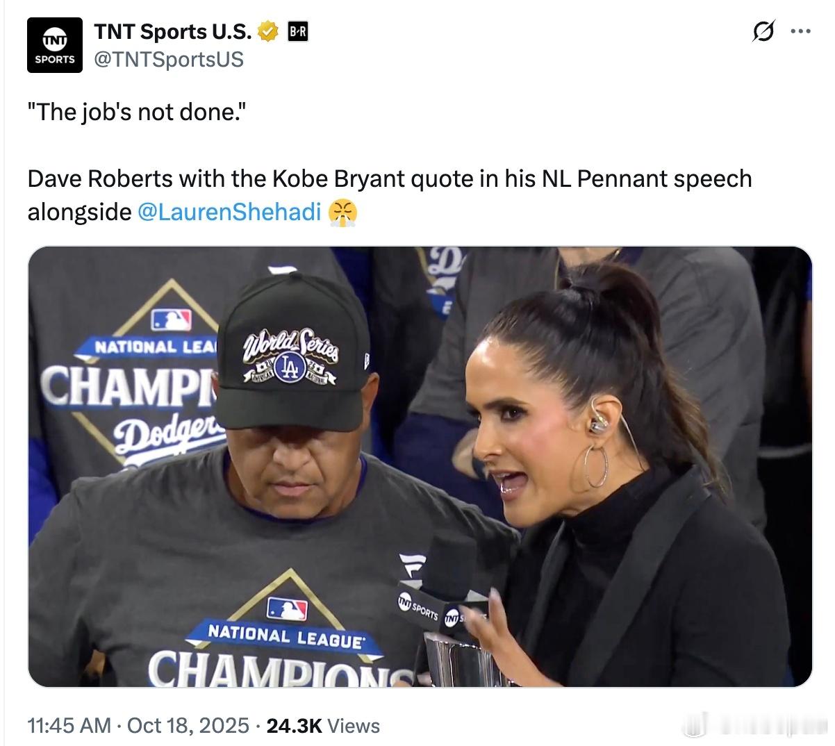 3比0和横扫酿酒人后,贝茨和罗伯茨都说了科比说过的那句Job's not done ​​​