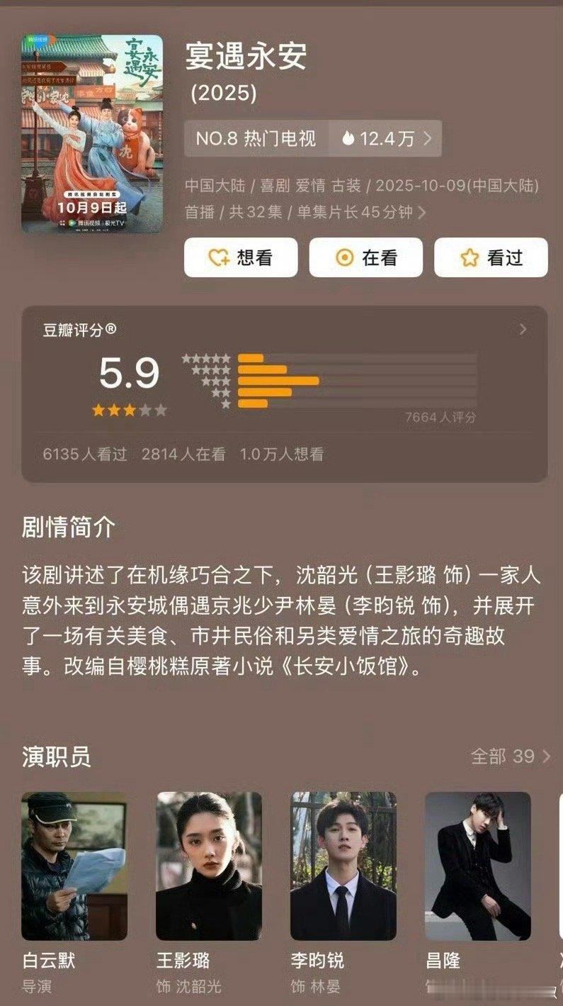 《宴遇永安》豆瓣开分5.9,不到1w人打分,这……