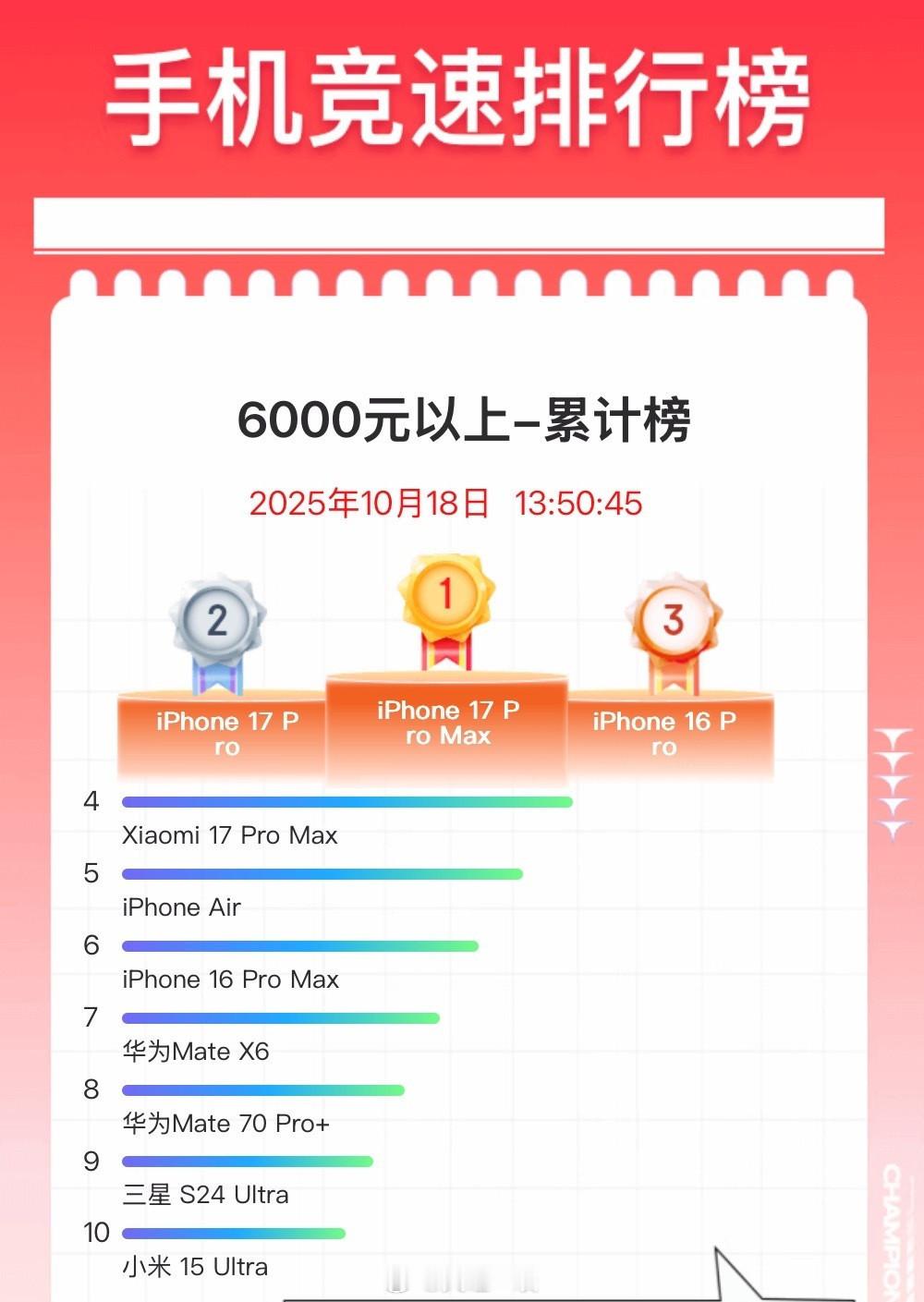 小米17 Pro Max京东6000元以上单品销量累计国产排名第一,整体排名第四位。仅次于苹果的三款机型。小米17pro ​​​