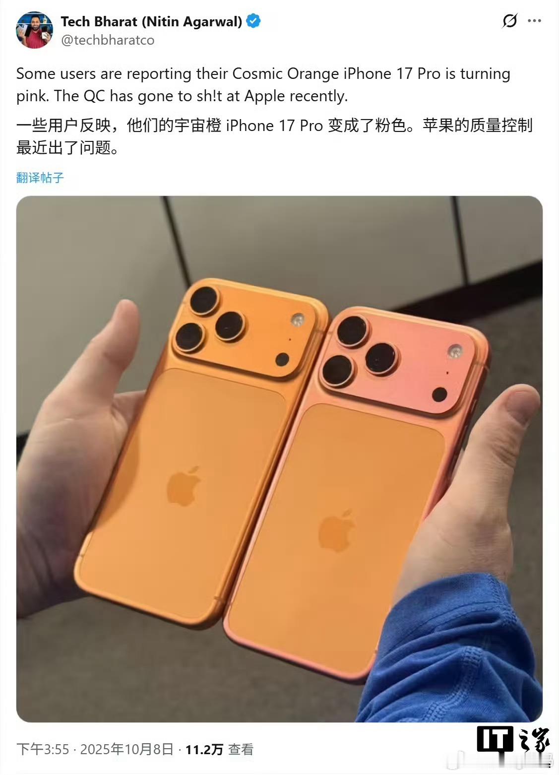 iPhone17被曝机身褪色变成玫瑰金了你的iPhone17promax有这种情
