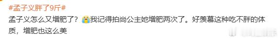 孟子义为新剧尚公主增肥两次,孟子义吃不胖体质,咱就说狠狠的羡慕住孟姐的体质了呀,期待住和暮晚摇的见面啦~