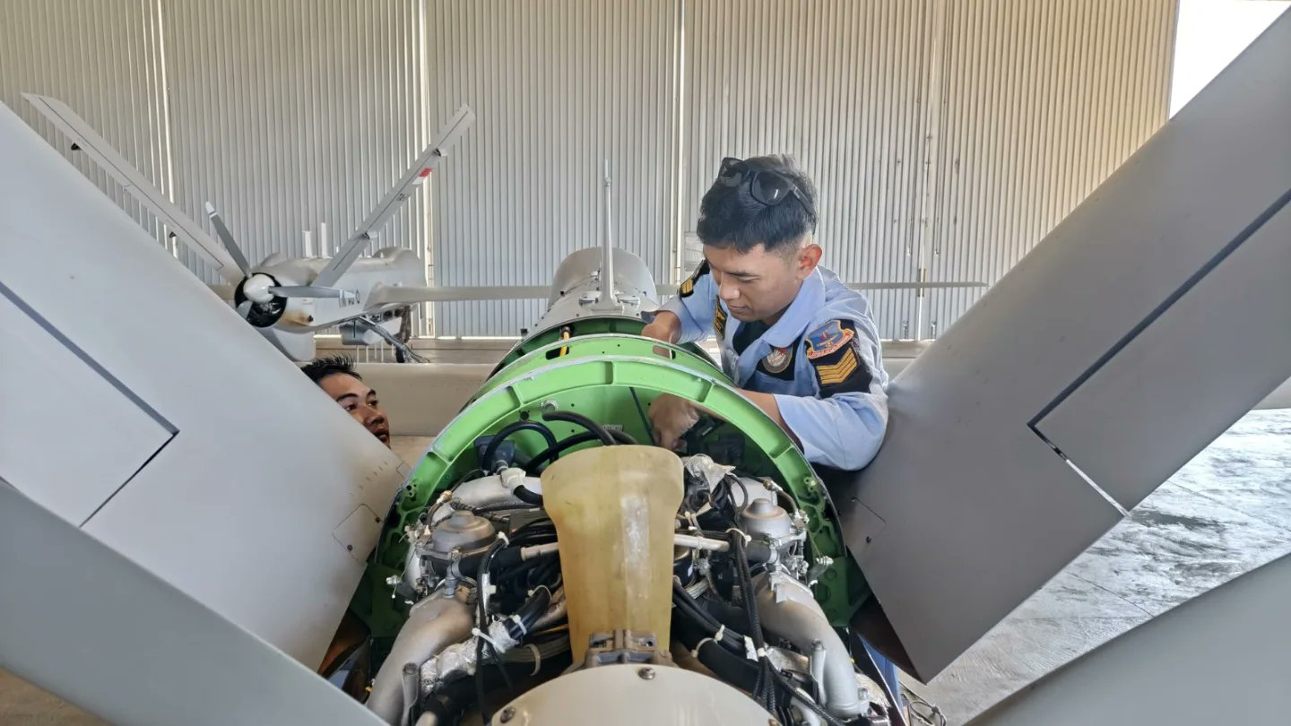 印尼空军从我国进口的彩虹-4B察打一体无人机再次露面,印尼军方发布了它们的维护保