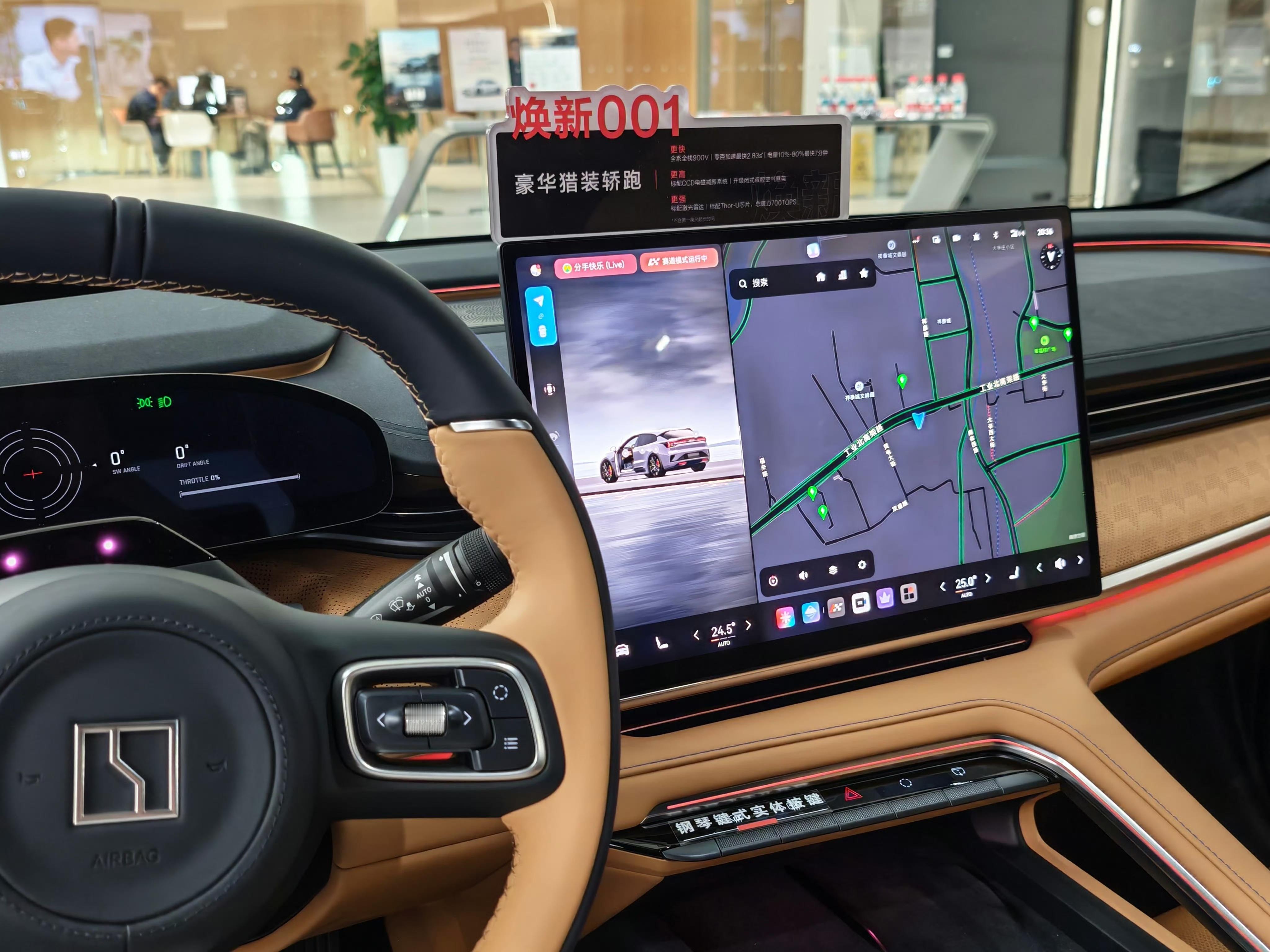 那既然来都来了,那就去试驾和试乘一下焕新版极氪001,试驾车的版本是焕新版极氪001 Max四驱95度电版本,那展车则是Ultra版。那给我初始的感受,整体坐上去就显得有质感,全系都是Nappa真皮。必须表扬的一点是,前排的腿托都非常的长,你坐上去的坐姿会很舒服。然后坐在展车上面,4680瓦的音响,坐上去的第一听感也很好。坐在后排,有伊姆斯躺椅,你可以躺在那儿,听着歌,看着星空顶,舒适感确实很强。