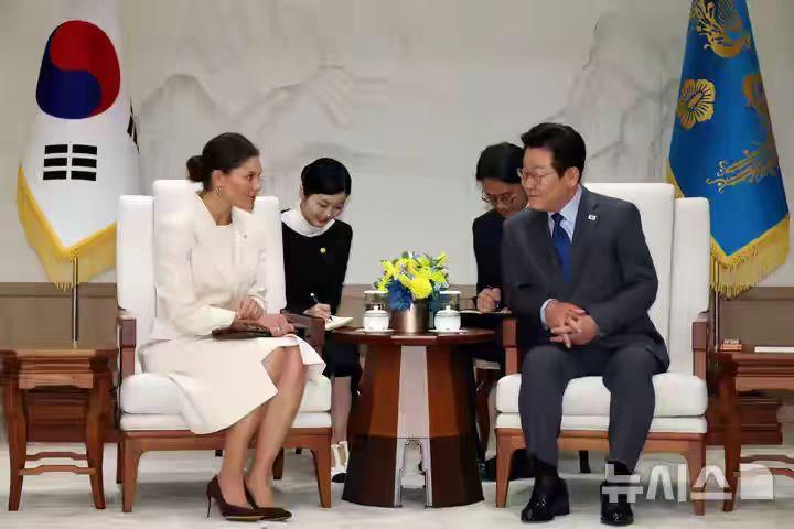 李在明的贴身美女翻译火了! 她不仅是李在明的贴身翻译,也是瑞典女王储维多利亚访
