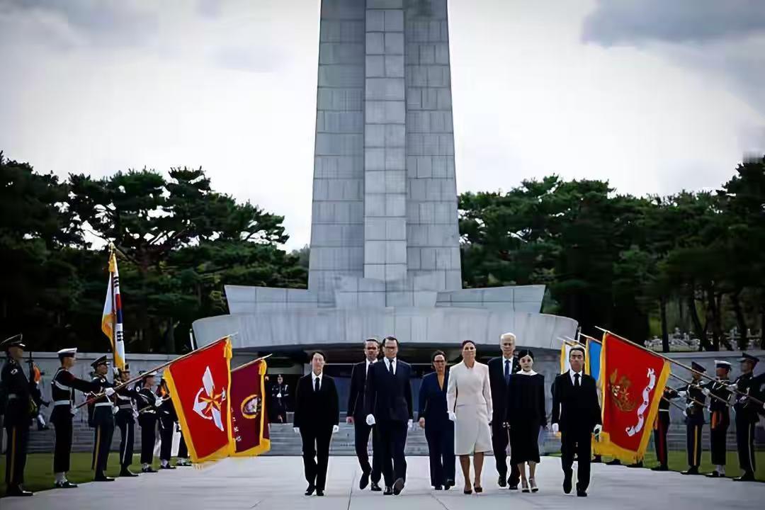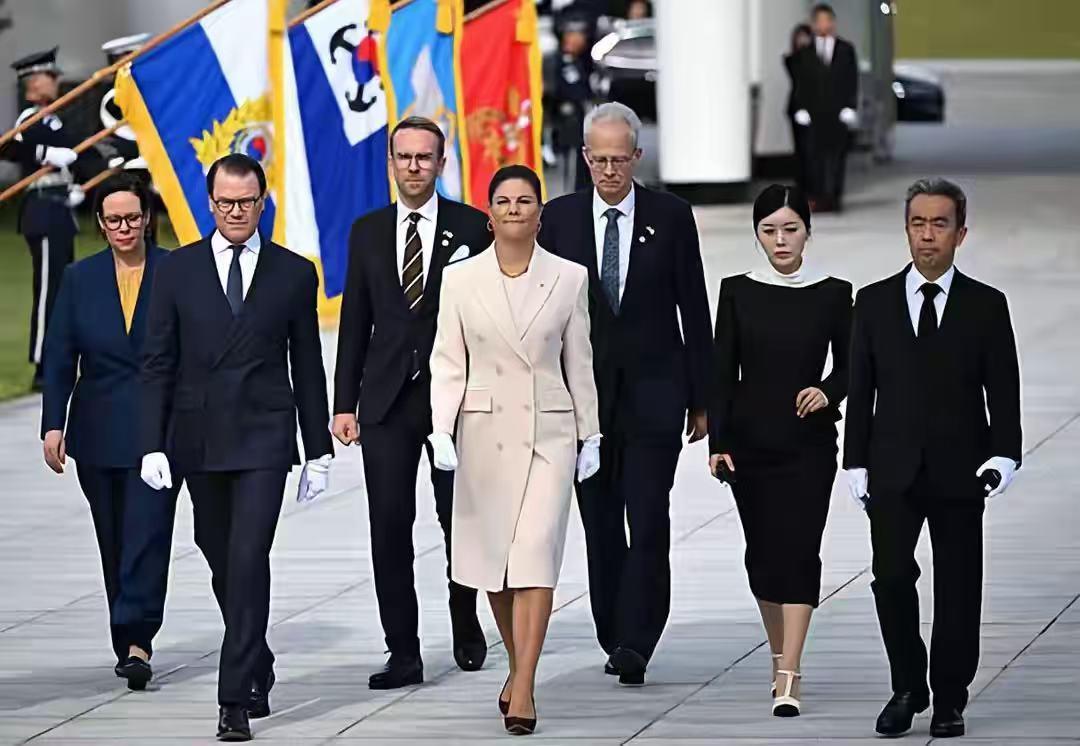 李在明的贴身美女翻译火了! 她不仅是李在明的贴身翻译,也是瑞典女王储维多利亚访问韩国期间的翻译。一张出众的明星般的脸硬是把女王都比下去了,完全看不出她已经是42岁的人!跟维多利亚女王储一样都是四十多岁的人,除了身高是硬伤,在一众人中,这位女翻译一颦一笑都很吸引人眼球。 她的学历也很牛,高中托福满分,留过学,精通法语、德语、英语,不然李在明也不会选择已经42岁她的做贴身翻译。一共穿了两套衣服,每一套搭配的发型和妆容都不一样,不得不说韩国在妆造这一块真的很牛。