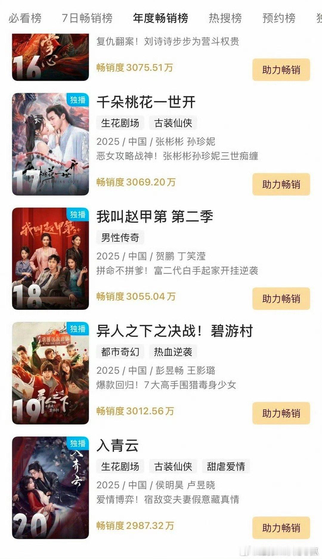侯明昊《入青云》进入优酷拉新年榜咯,开播11天!