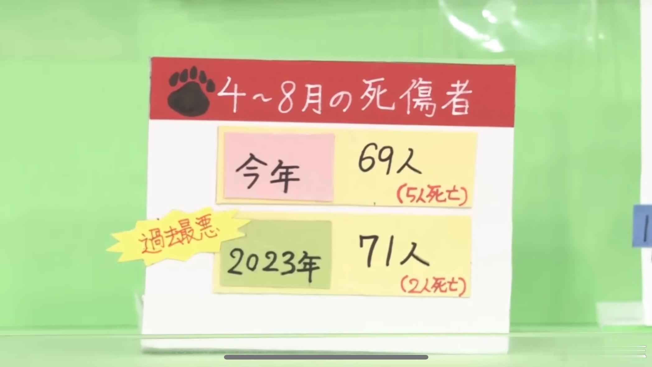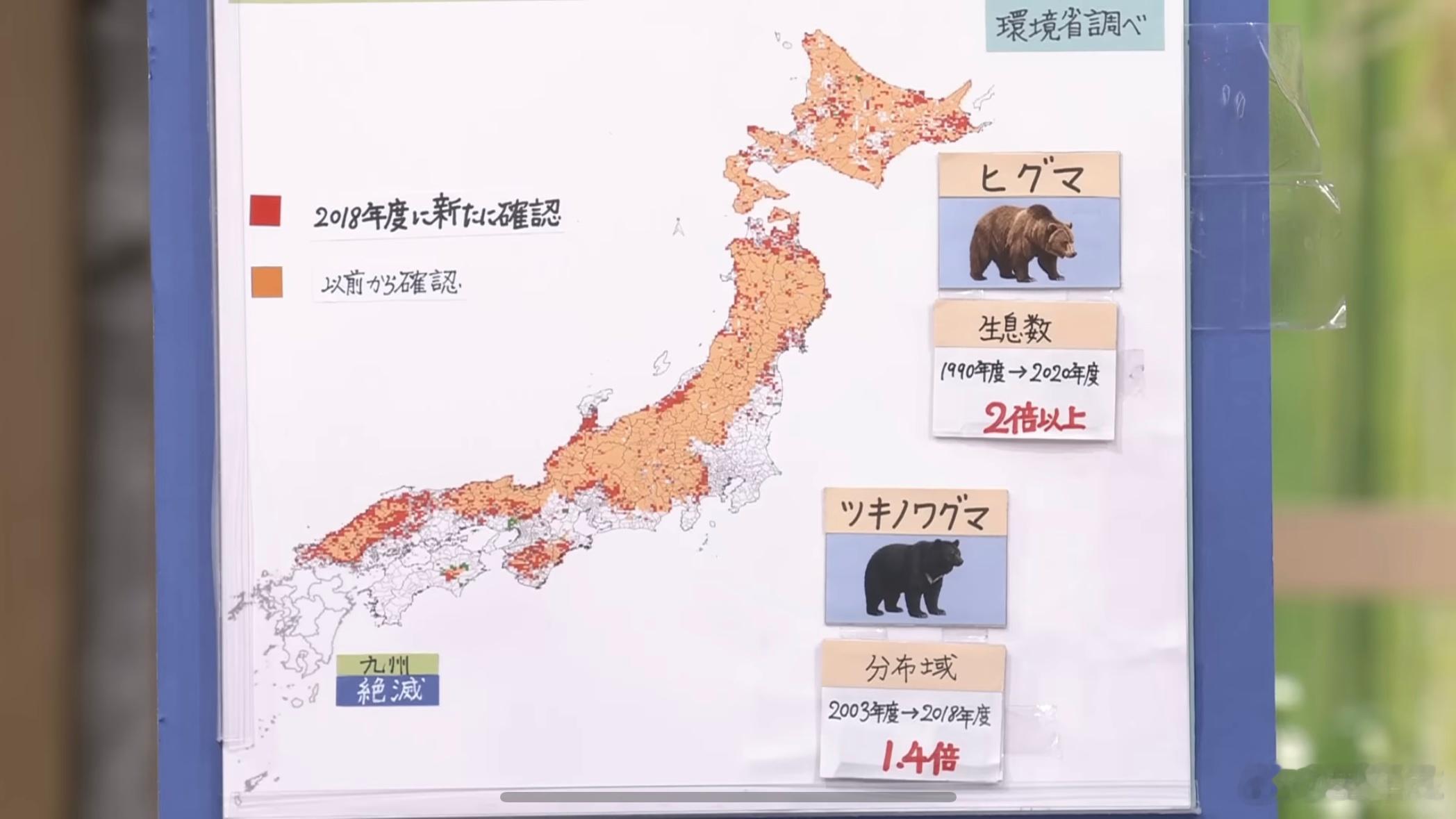 日本熊袭人事件增多 这还真不是国内炮制的fake news,别不当回事。由于生态保护太好、人口减少,日本现在真在闹熊灾。今年4~8月日本已有69人被熊袭击(5人死亡),逼近历史最糟纪录。北海道的棕熊30年间数量翻倍,本州、四国的熊分布范围扩大了1.4倍。现在除了千叶县,全国几乎哪儿都有熊。