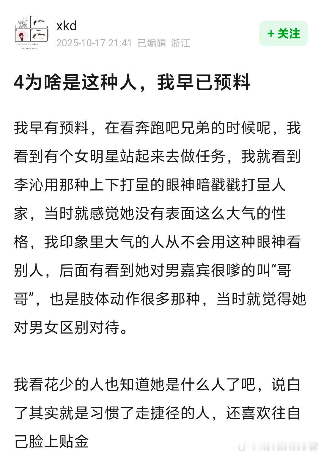 李沁花少最近被审判的好凶啊,上车这段因为想吹风然后后排开不了窗于是坐到前排,张晚意坐中间,后续声音发嗲还把头发散开,称是表演欲太强。