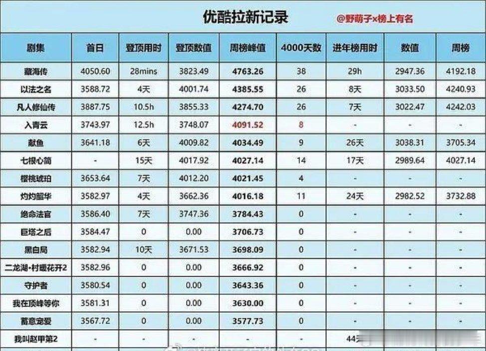 恭喜侯明昊的《入青云》开播第11天进优酷年榜~侯明昊牛[努力]