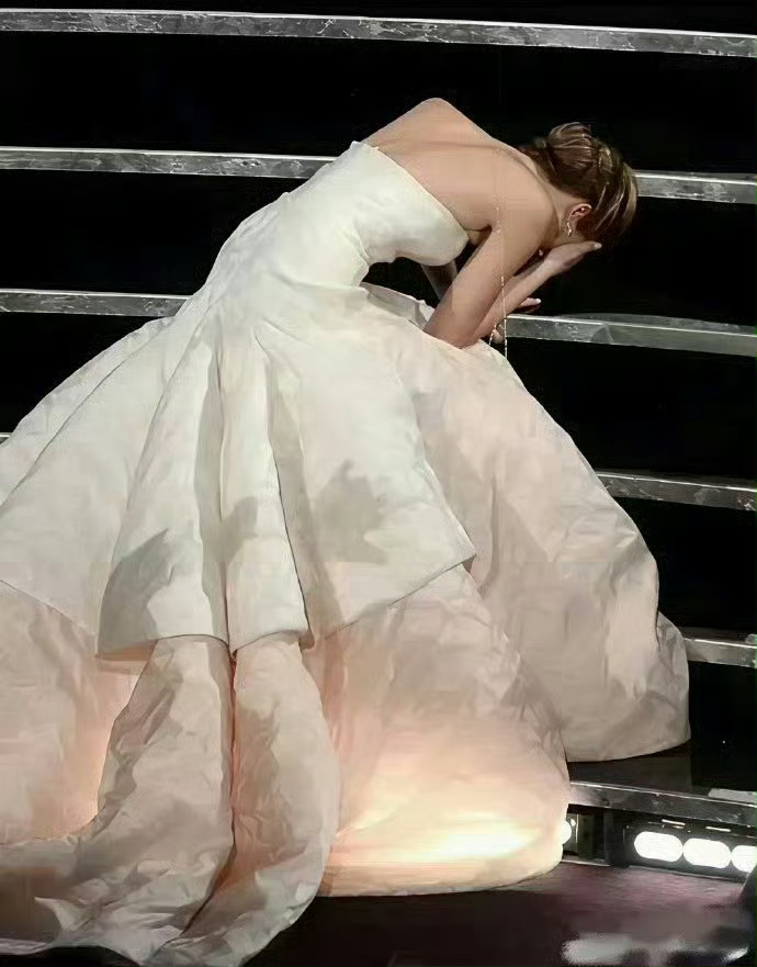 劳伦斯“摔出”几十年的代言。 本来这件礼服正面看太普通了,结果这一摔却美出天际,真的是出乎所有人的意料