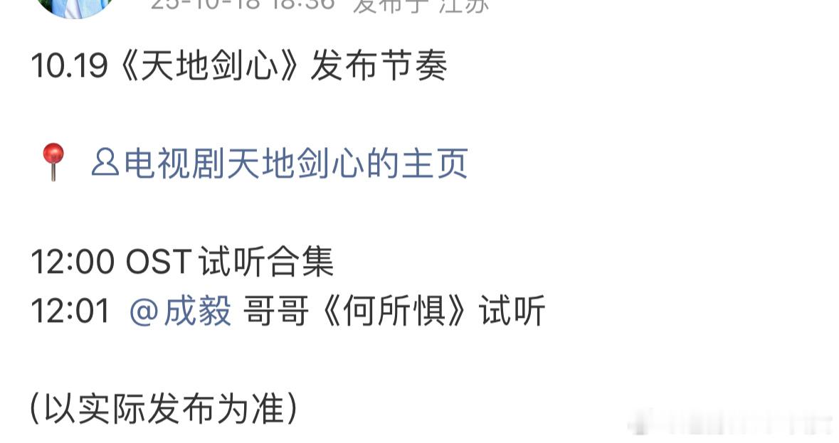 天地剑心10.19发布成毅演唱的ost,两京十五日10.19开机10.20发布概念片并正式官宣,iejj每天都好幸福啊 ​​​