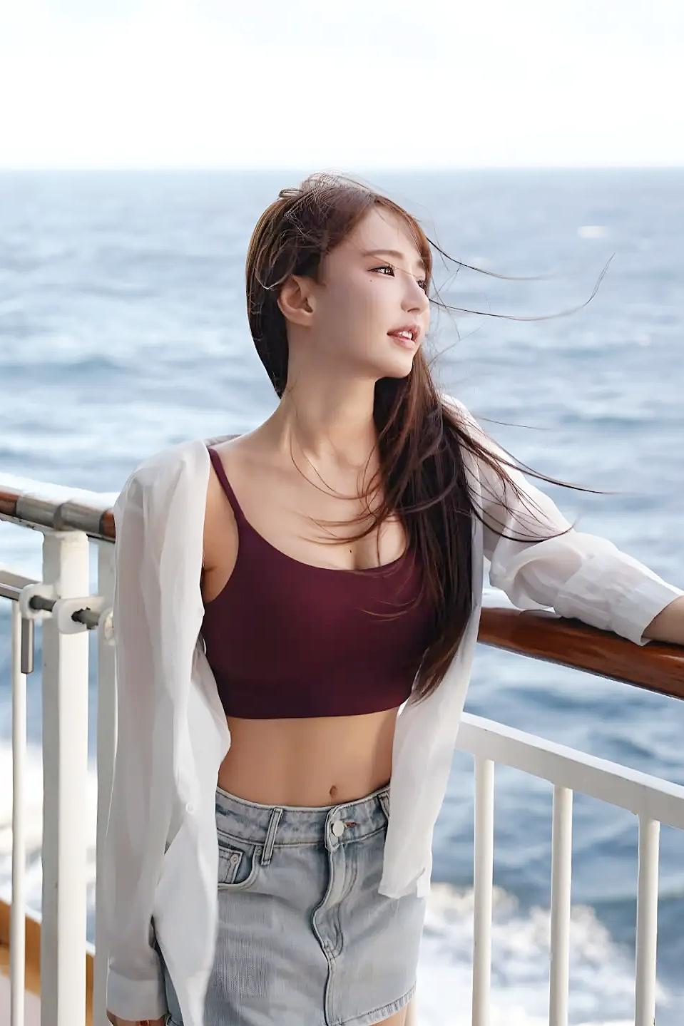 《海风吹拂的时光》原创诗词 海在远方翻涌蓝的浪 她立于舷边 白衫似云 轻扬 酒红吊带吻着腰线 牛仔裙漾着青春的倔强 风掠过长发 把心事吹向苍茫 眸中盛着海的澄澈 唇角弯着光的模样 这一瞬 时光也为她停留