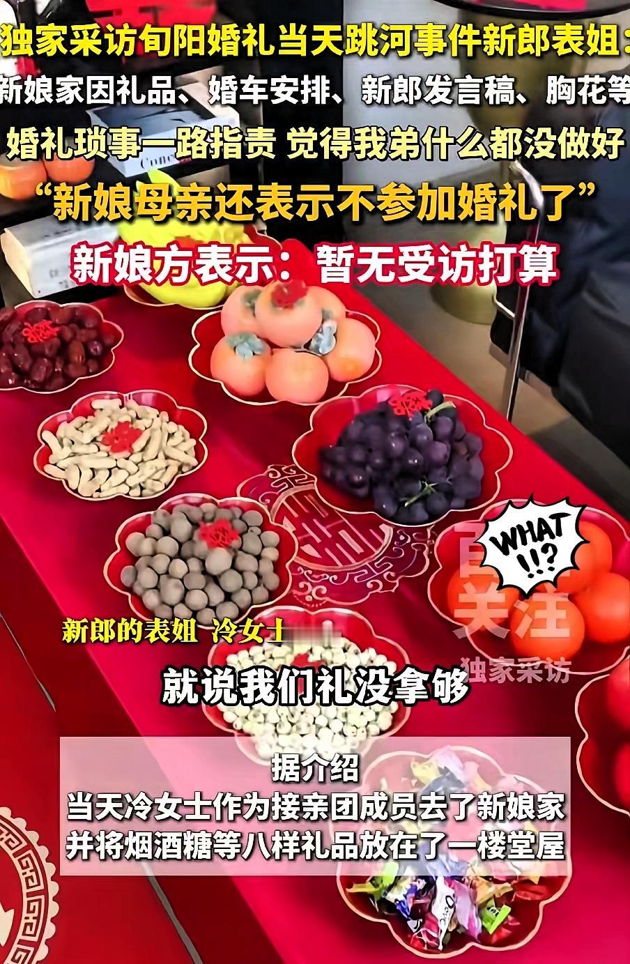 终于理解陕西跳河的新郎了 摊上这样的丈母娘家 搁谁不死也得疯!下辈子洒脱点,别这么委屈自己了! 一早上,丈母娘的连环call就没停过,说8样礼只收到4样,可新郎明明备齐了。没人知道是路上丢了,还是故意找茬,反正劈头盖脸的指责先来了! 接着是婚车没准时、胸花不对、发言稿不满意,桩桩件件都成了挑剔的理由。最绝的是,最后撂下一句“我不去了,你婚礼见不到我”! 要是早看不上女婿,当初就别点头;要是心里满意,这点小疏漏,等仪式结束了慢慢说不行吗?非要在人生最重要的一天,把人逼到退无可退! 你觉得,婚礼上的小插曲,该当场较真还是事后沟通?来评论区聊聊你的看法。