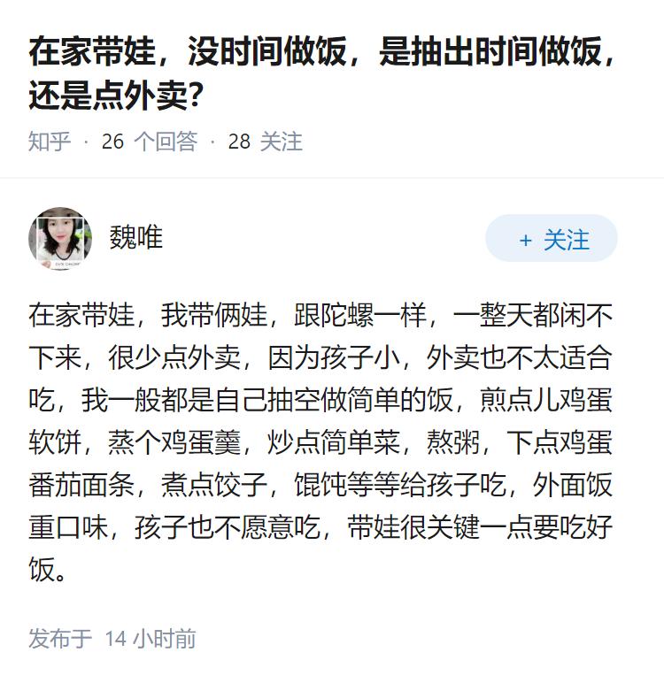 在家带娃,没时间做饭,是抽出时间做饭,还是点外卖?
