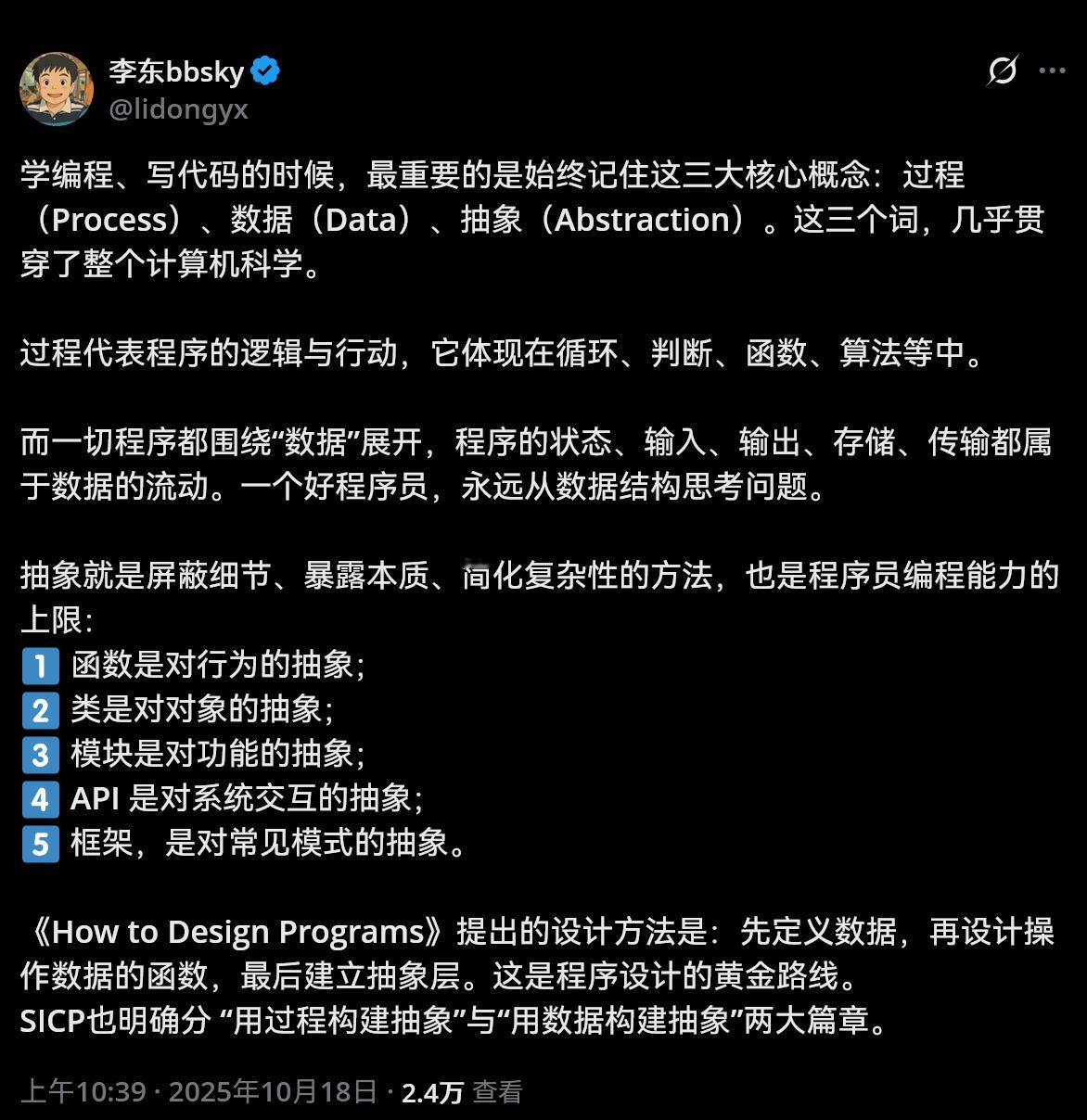三大核心概念:过程(Process)、数据(Data)、抽象(Abstracti