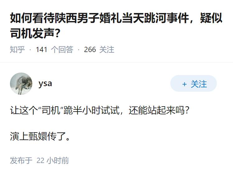 如何看待陕西男子婚礼当天跳河事件,疑似司机发声?