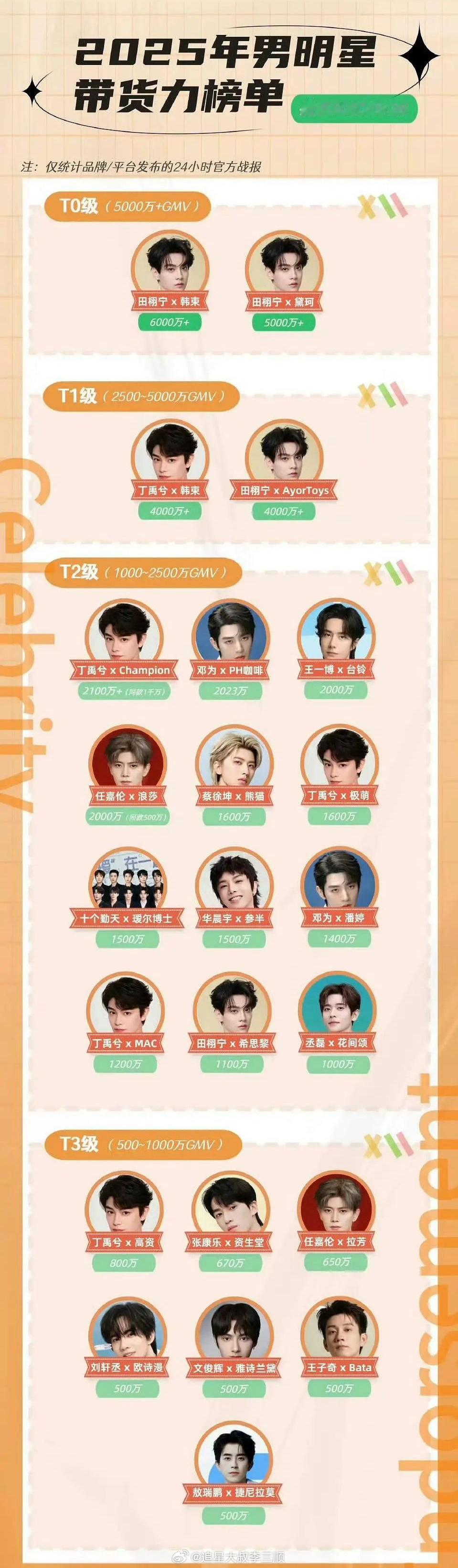 T2级:丁禹兮,邓为,王一博,任嘉伦,蔡徐坤,丁禹兮,十个勤天,华晨宇,邓为,丁禹兮,田栩宁,丞磊