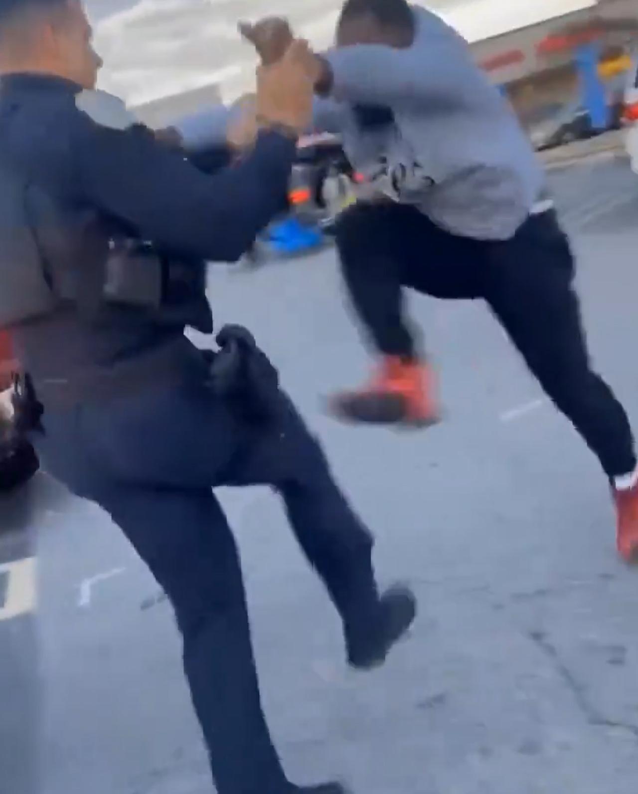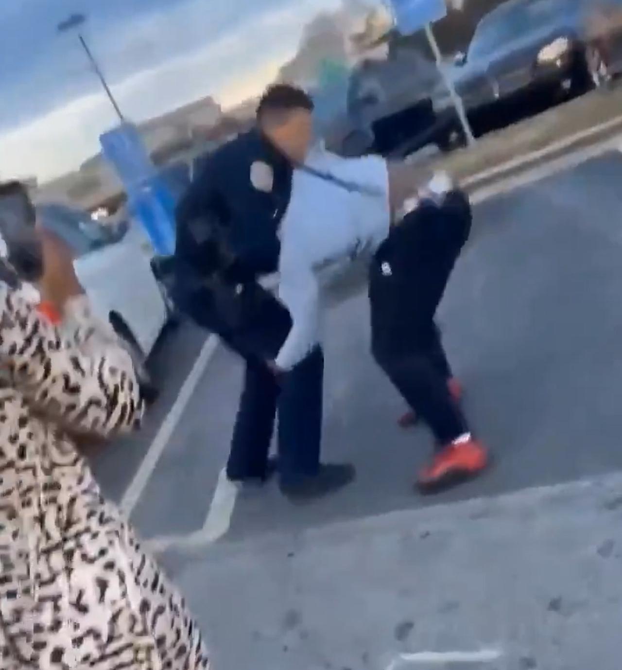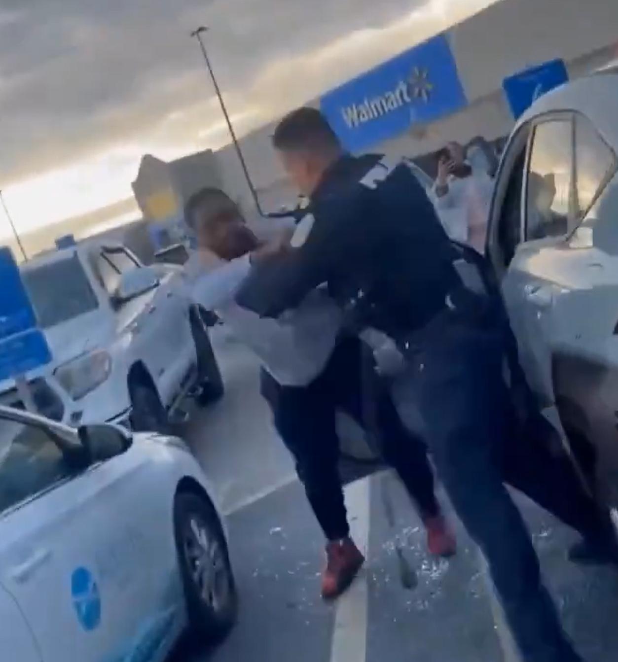 美国街头的日常。 在美国某地的沃尔玛超市停车场,一名警察跟一名黑人发生了肢体冲突。 这其中,有两个值得注意的点: 1、黑人小哥的战斗力不弱,有美国警察打的有来有回。 2、美国警察小哥很克制,自始至终,都没有拔出biubiubiu。 这件事,不知道最后是怎么处理的,但是黑人小哥还是被控制住了。