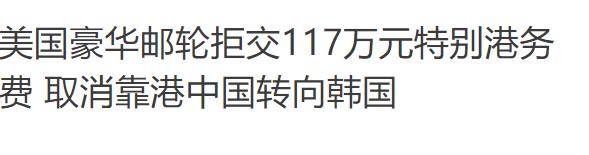 船只收费反制生效!美国一邮轮为拒交1167万港务费,取消挂靠中国港口 10月